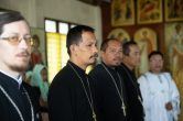 Его Высокопреосвященству сослужили: секретарь Филиппинско-Вьетнамской епархии иеромонах Корнилий (Молев), секретарь Ханты-Мансийской епархии игумен Антоний (Кирпичев), благочинный Сургутского городского благочиния Ханты-Мансийской епархии протоиерей Антоний Исаков, благочинный Нижневартовского городского благочиния Ханты-Мансийской епархии протоиерей Сергий Шевченко, иерей Олег Гордеев, духовенство Филиппинско-Вьетнамской епархии. Диаконский чин возглавил иеродиакон Никодим (Пирховский).