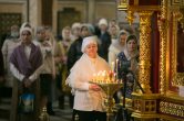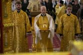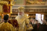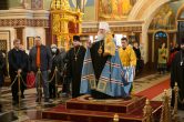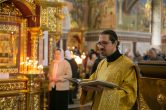 На сугубой ектении были вознесены особые прошения, ключарь Воскресенского кафедрального собора иерей Александр Петюр прочитал молитву о Святой Руси.