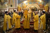 Его Высокопреосвященству сослужили: ключарь Воскресенского кафедрального собора иерей Александр Петюр, духовенство собора.