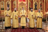 Его Высокопреосвященству сослужили: ключарь собора, иерей Сергий Нагорный, председатель епархиального отдела религиозного образования и катехизации, иерей Дмитрий Губанищев, эконом епархии, иерей Александр Петюр, клирик собора, иерей Григорий Белянин, иерей Вячеслав Фомин, диакон Даниил Матвеев, диакон Игорь Логвин и диакон Сергий Барыкин.