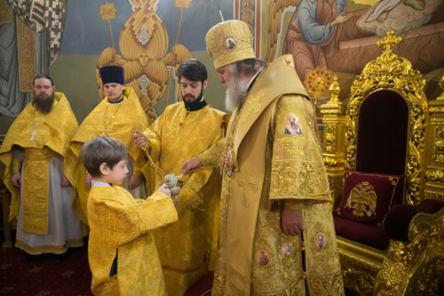10 марта 2019 года в Неделю сыропустную. Воспоминание Адамова изгнания, митрополит Ханты-Мансийский и Сургутский Павел совершил Божественную Литургию в Воскресенском кафедральном соборе г. Ханты-Мансийска.