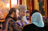 Его Высокопреосвященству сослужили: протоиерей Андрей Олейник, ключарь собора, иерей Сергий Нагорный, председатель епархиального отдела религиозного образования и катехизации, иерей Дмитрий Губанищев, эконом епархии, иерей Александр Петюр, клирик собора, иерей Григорий Белянин, клирик собора, иерей Вячеслав Фомин, диакон Даниил Матвеев, диакон Игорь Логвин и диакон Сергий Барыкин.