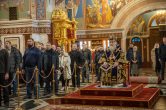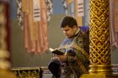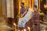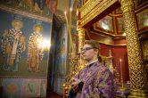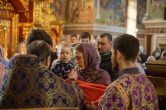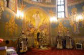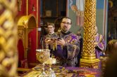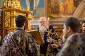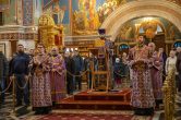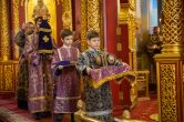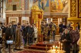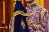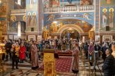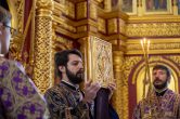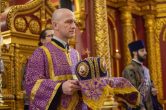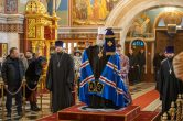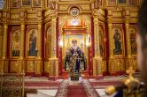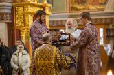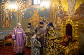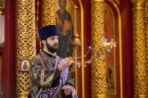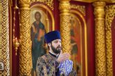 На сугубой ектении были вознесены особые прошения, ключарь Воскресенского кафедрального собора иерей Александр Петюр прочитал молитву о Святой Руси.
