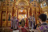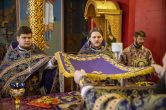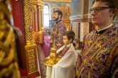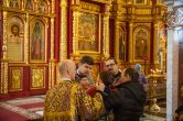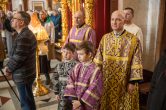 Его Высокопреосвященству сослужили: ключарь Воскресенского кафедрального собора иерей Александр Петюр, духовенство собора. Диаконский чин возглавил диакон Даниил Матвеев.