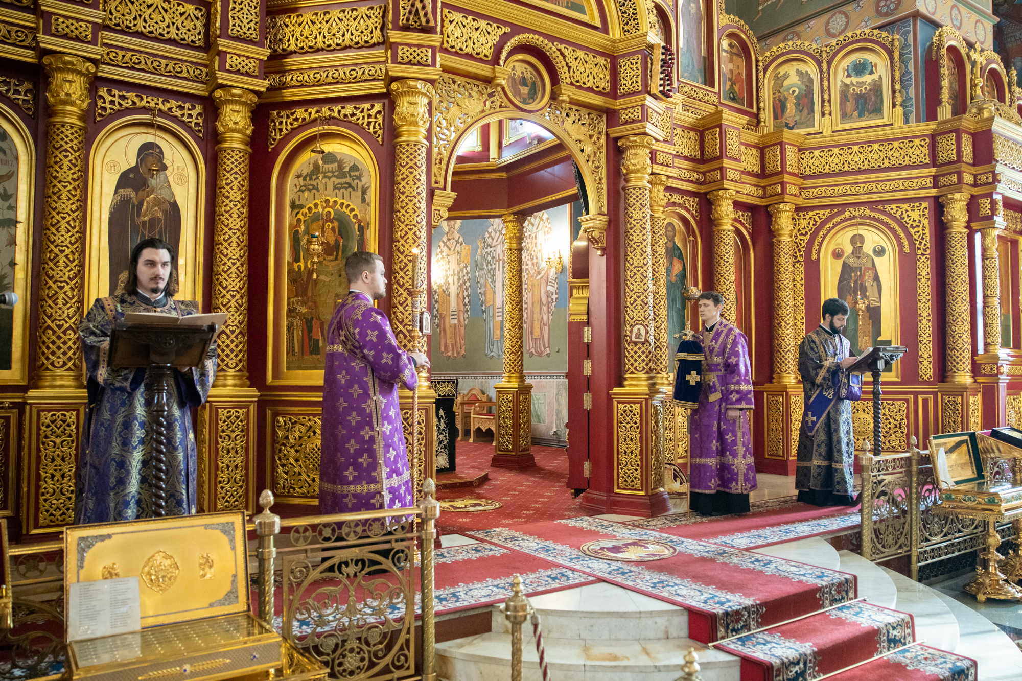 Его Высокопреосвященству сослужили: благочинный Ханты-Мансийского благочиния иерей Димитрий Губанищев, ключарь собора иерей Александр Петюр, духовенство собора.