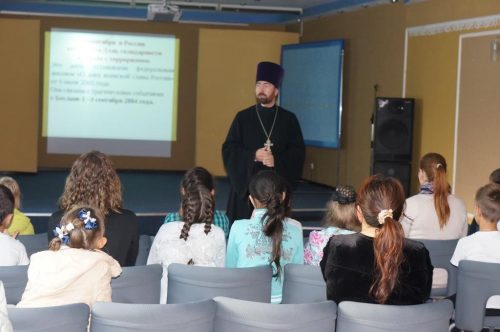 4-5 сентября 2017 года штатный клирик прихода храма Святого Духа г.Нефтеюганска иерей Алексий Осипов принял участие в мероприятиях, посвященных Дню солидарности в борьбе с терроризмом. В «Детской музыкальной школе им.В.В.Андреева», а также в «Центре национальных культур» г.Нефтеюганска отец Алексий рассказал детям и взрослым о позиции Церкви, которая молится о жертвах терроризма и призывает укрепляться духом и твердо хранить веру и единство.Галерея