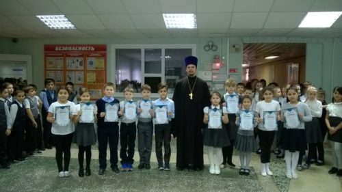 13 ноября 2018 года в здании Нижнесортымской средней общеобразовательной школы состоялась торжественная линейка учащихся третьих классов, во время которой были подведены итоги конкурса рисунков, приуроченного к празднованию Покрова Божией Матери. Данный конкурс был организован учебным заведением совместно с приходом храма в честь святителя Тихона, патриарха Московского и всея Руси, сельского поселения Нижнесортымский. Во время мероприятия настоятель прихода иерей Евгений Чебыкин поблагодарил организаторов и участников конкурса, а также вручил почетные грамоты победителям и учителям.Галерея