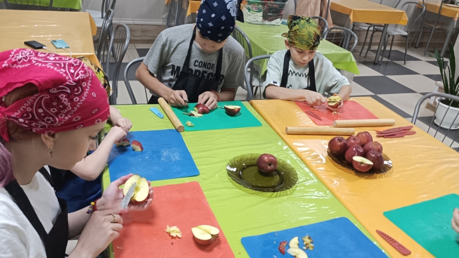 5 октября 2025 года волонтеры храма Великомученика и Целителя Пантелеимона провели занятие в кулинарной школе «БЛАГОСЕРДИЕ» с детьми из бюджетного учреждения Ханты-Мансийского автономного округа–Югры «Нижневартовский комплексный центр социального обслуживания населения». Сегодня волонтёры готовили с ребятами яблочные слойки из слоеного теста в духовке. Пока запекались слойки, поварята приготовили чай из листьев мяты, тимьяна и лайма. За красиво накрытым столом прошла дегустация.