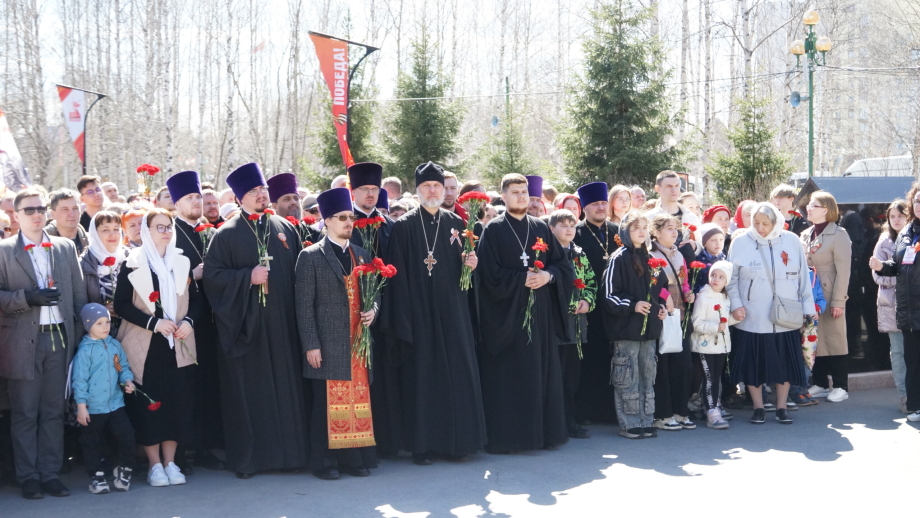 В Нижневартовске священнослужители и прихожане возложили цветы к Вечному огню
