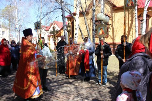 По окончании богослужения состоялся праздничный Крестный ход вокруг храма.