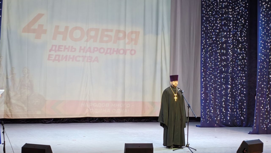 4 ноября 2025 года в ДК «Геолог» пгт. Новоанск состоялся концерт, посвященный Дню народного единства. Настоятель храма Новомучеников и Исповедников Церкви Русской иерей Андрей Иванилов рассказал об истории праздника и поздравил всех.