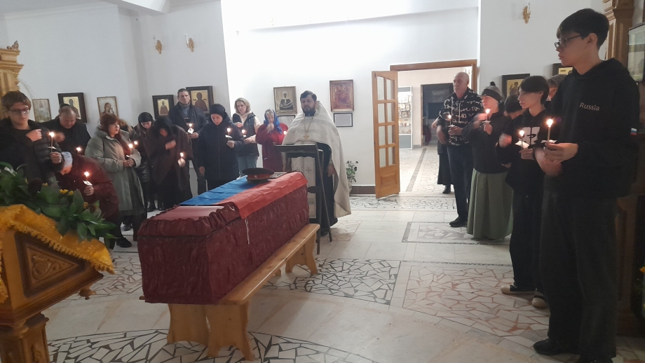 В храме в честь святого благоверного великого князя Александра Невского собрались родственники и друзья погибшего воина, представители Администрации городского поселения, прихожане храма Святой Троицы. Отпевание провел настоятель Прихода иерей Иоанн Дарий.