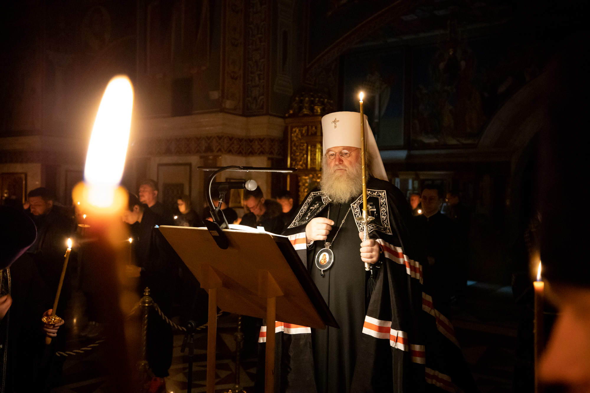 В понедельник первой седмицы Великого поста митрополит Павел совершил повечерие с чтением Великого канона прп. Андрея Критского в Воскресенском кафедральном соборе г. Ханты-Мансийска