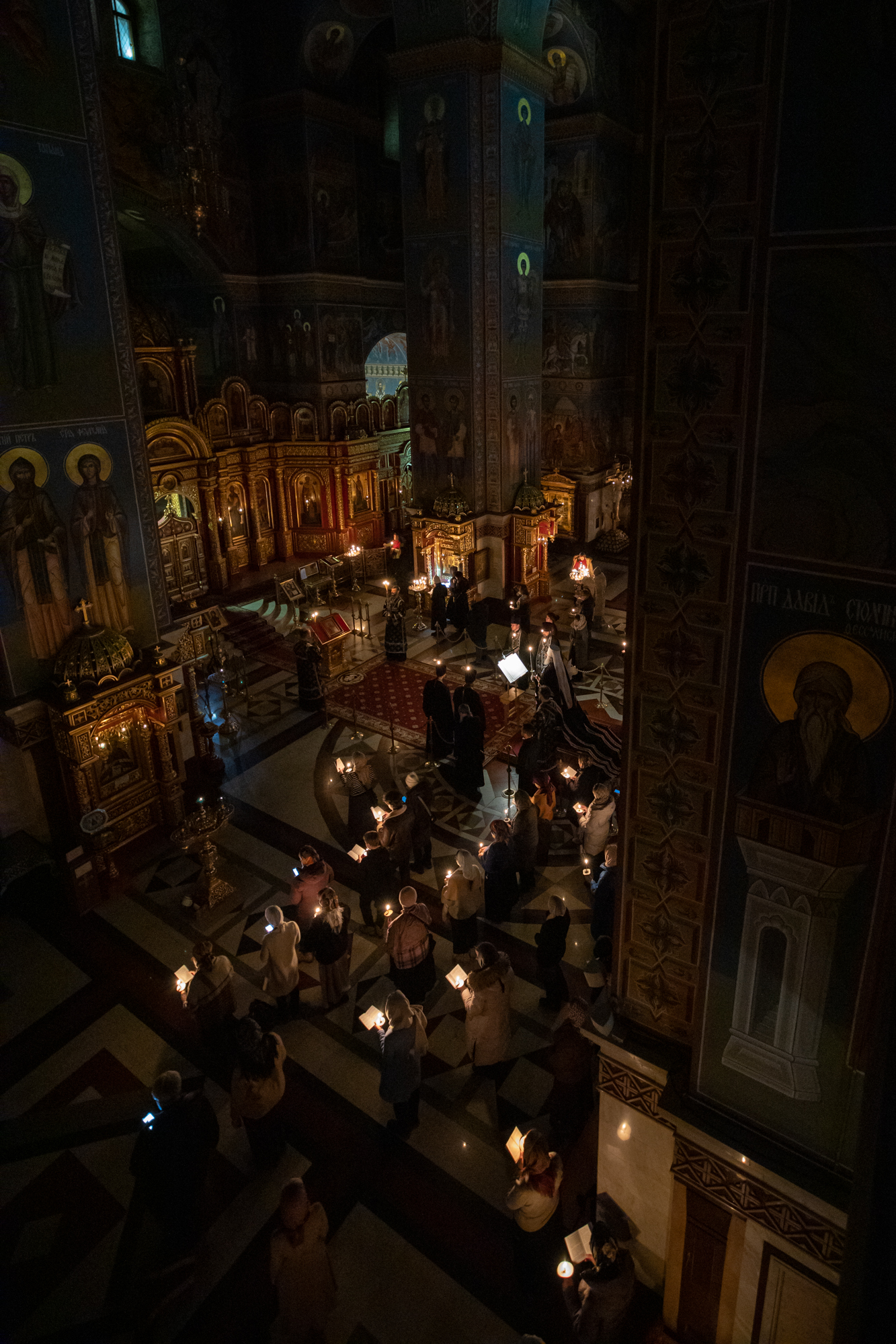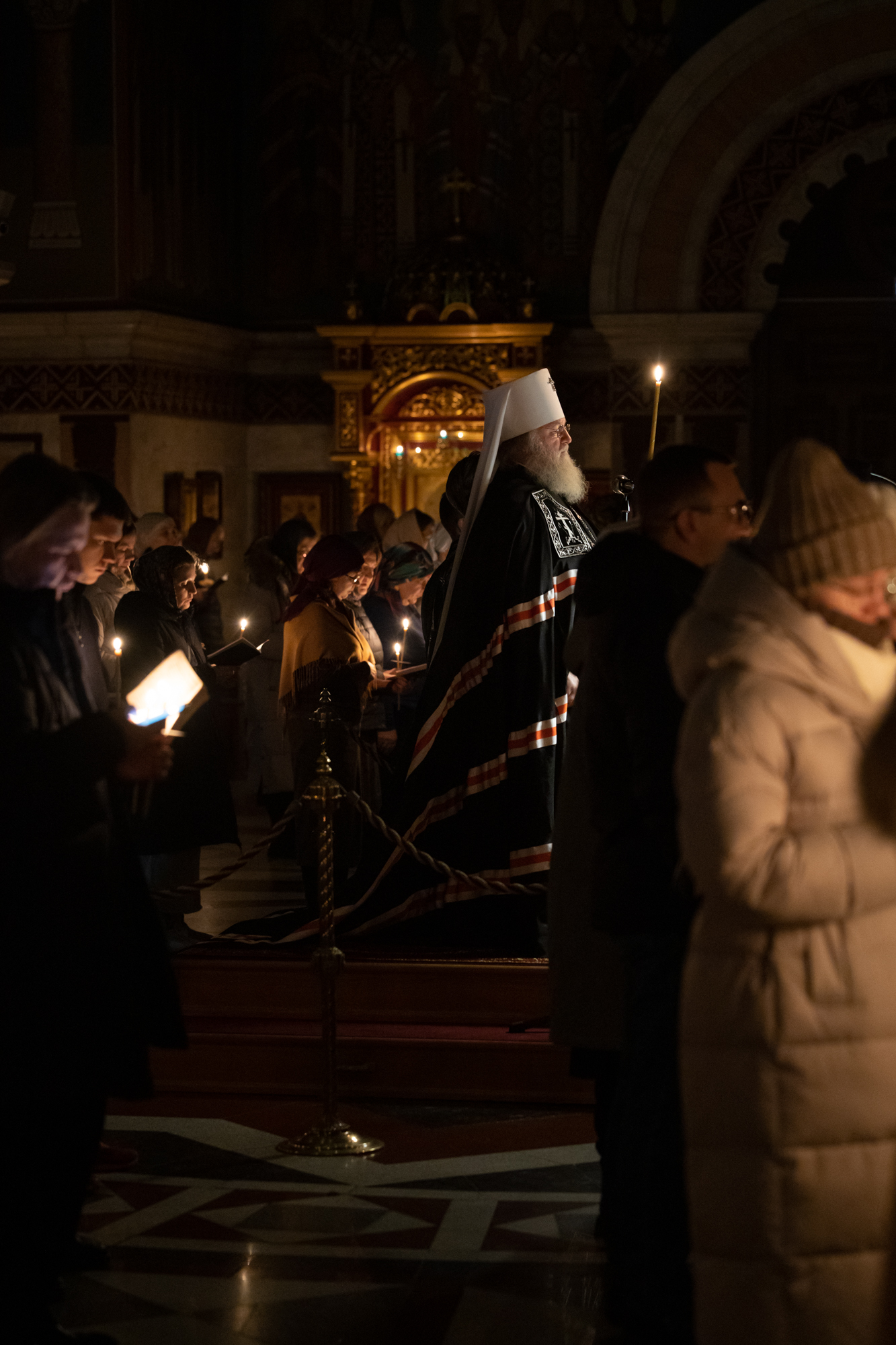23 февраля 2025 года, в понедельник первой седмицы Великого поста митрополит Ханты-Мансийский и Сургутский Павел совершил повечерие с чтением Великого канона прп. Андрея Критского в Воскресенском кафедральном соборе г. Ханты-Мансийска.