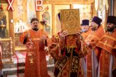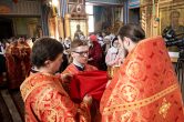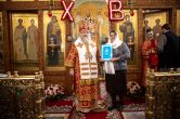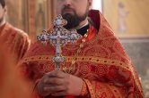 На малом входе указом Святейшего Патриарха Московского и всея Руси Кирилла за усердное служение Святой Церкви иерей Дмитрий Василенко, настоятель храма прп. Петра и Павла г. Пыть Яха, к празднику Святой Пасхи удостоен права ношения палицы.