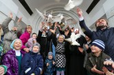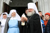 После Богослужения по традиции в честь праздника Благовещения владыкой и прихожанами в небо были выпущены голуби.