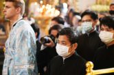 Среди молившихся за Литургией была группа обучающихся в Московской и Санкт-Петербургской духовных школах семинаристов из Индонезии и Филиппин, по благословению Патриаршего экзарха Юго-Восточной Азии митрополита Сингапурского и Юго-Восточно-Азиатского Сергия во время каникул совершающих паломнические поездки по храмам и монастырям Русской Православной Церкви. Группу сопровождает сотрудник Отдела внешних церковных связей Московского Патриархата Д.И. Петровский.