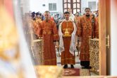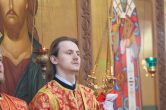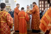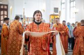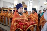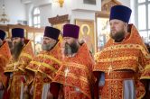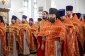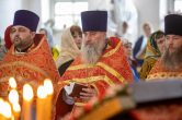 Его Высокопреосвященству сослужили: секретарь Ханты-Мансийской епархии игумен Антоний (Кирпичев), секретарь Югорской епархии иерей Николай Щерба, ключарь собора иерей Еварест Нигамедьянов, духовенство Югорской епархии. Диаконский чин возглавил Александр Дидковский.