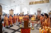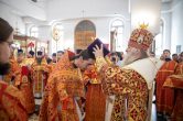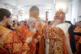 В праздник Преполовения Пятидесятницы митрополит Ханты-Мансийский и Сургутский Павел совершил Литургию в кафедральном соборе в честь свт. Алексия Московского г. Нягани