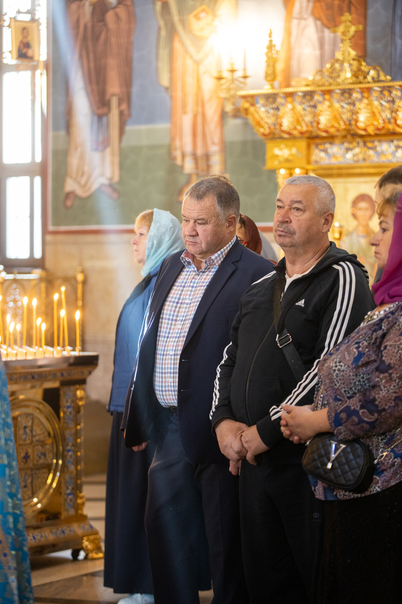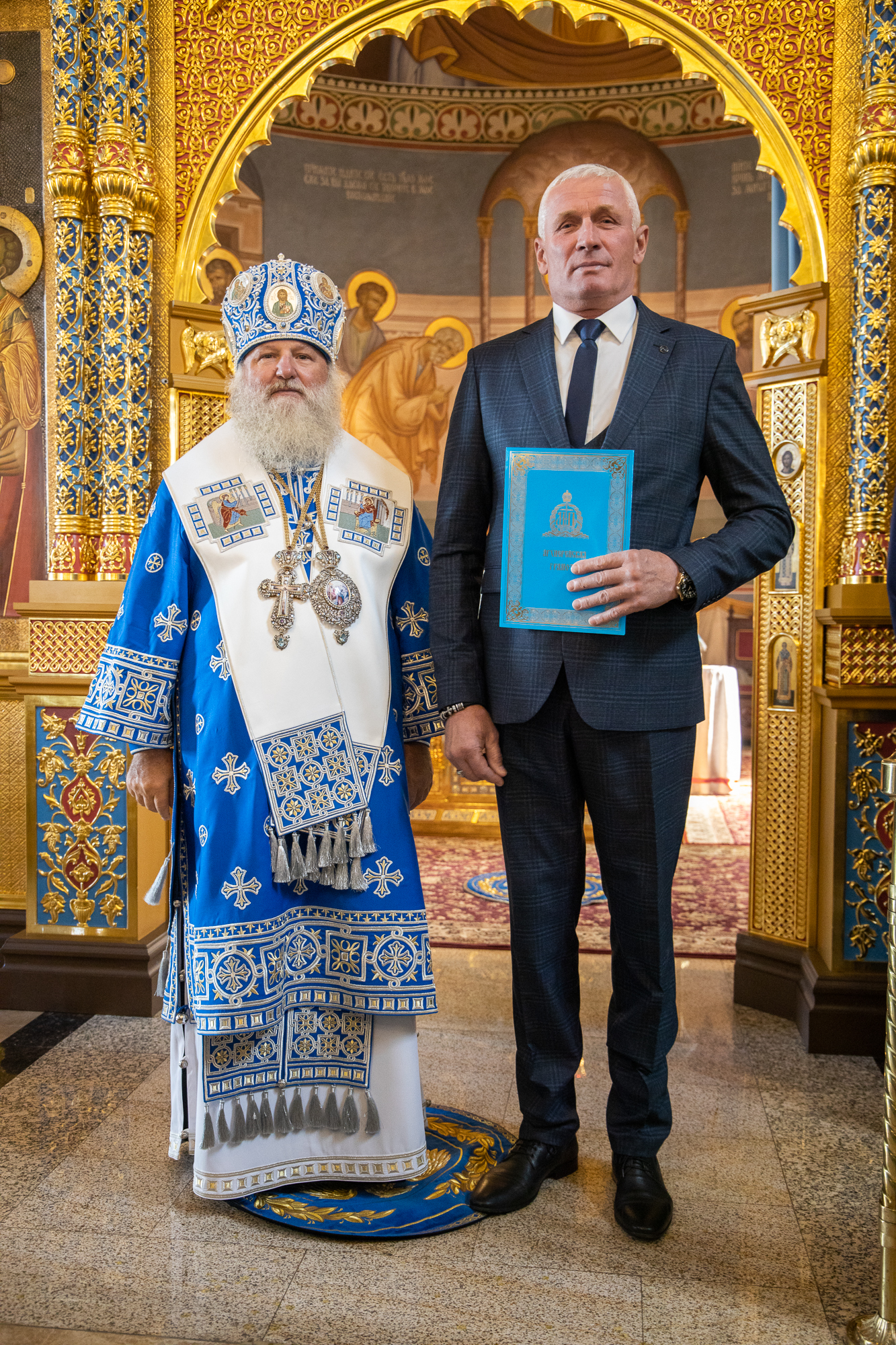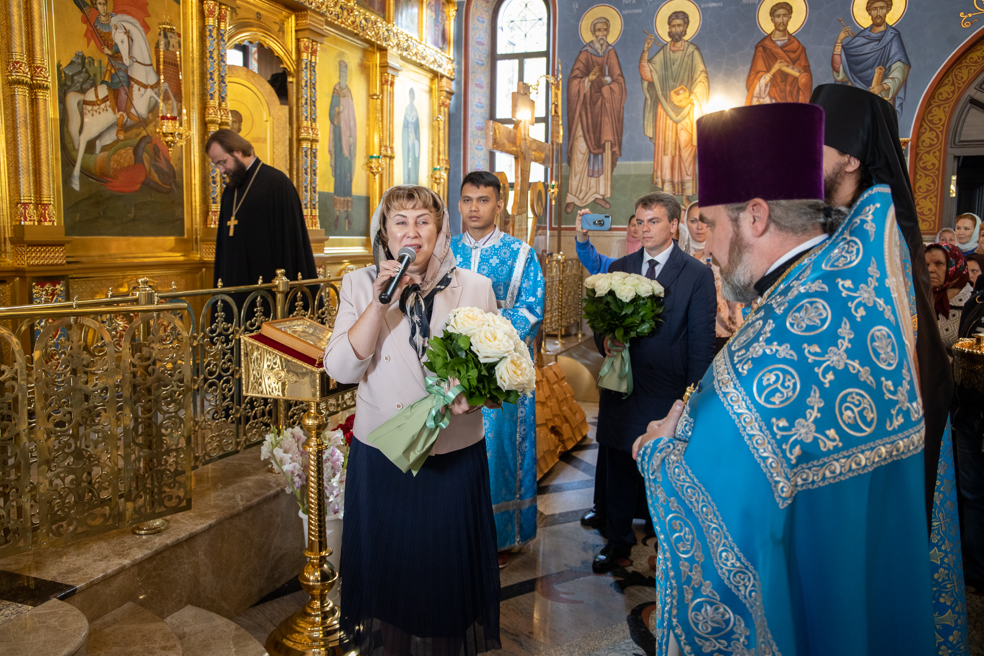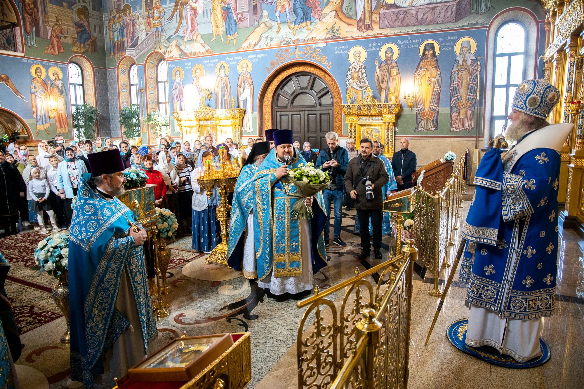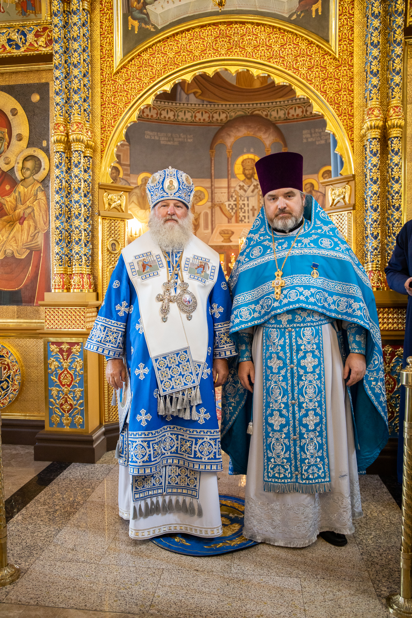 Хотел бы также поздравить всех нас с 10-летним юбилеем великого освящения этого прекрасного храма, можно сказать собора, по его величине и величественности. Ровно 10 лет назад, в день Рождества Пресвятой Богородицы Святейший Патриарх Московский и всея Руси Кирилл освятил этот храм. И все мы помним это событие и сопереживаем, как будто совершается что- то подобное сегодня. Я хоте бы поблагодарить наших строителей, Николая Калинниковича, главного нашего строителя этого храма. В 2011 году я только вступил на эту кафедру и помню те непростые времена, но мы вместе помолились и поняли, что с Богом всё возможно. Этот храм построился за кратчайшее время и в этом я усматриваю благословение Божие. Когда Господь благословил, мы построили за 2 года весь комплекс и вошли в него. Это невиданно даже при нынешних сроках возведения храмов.