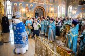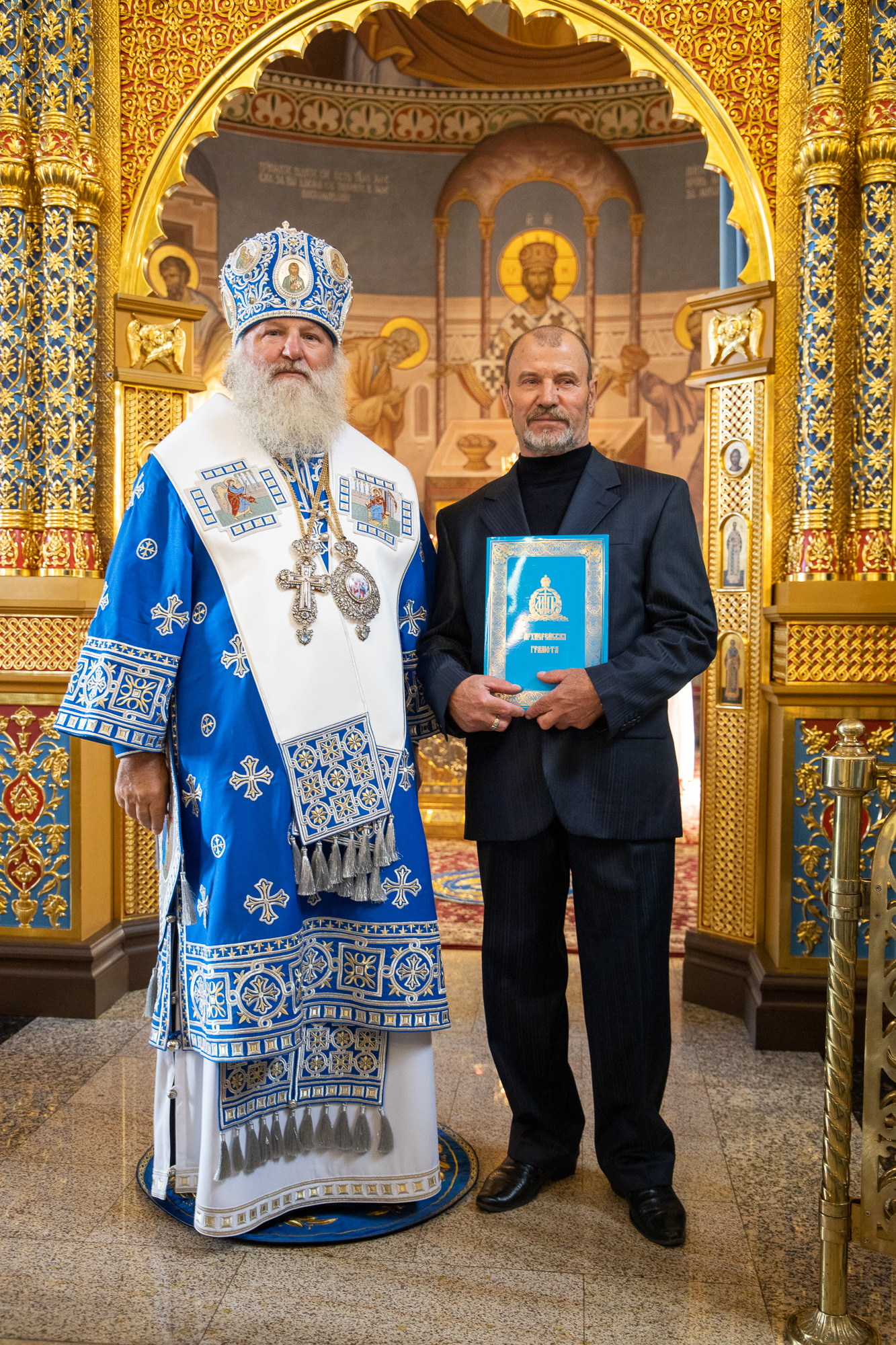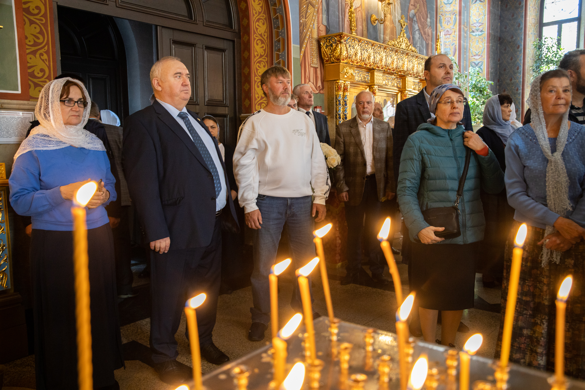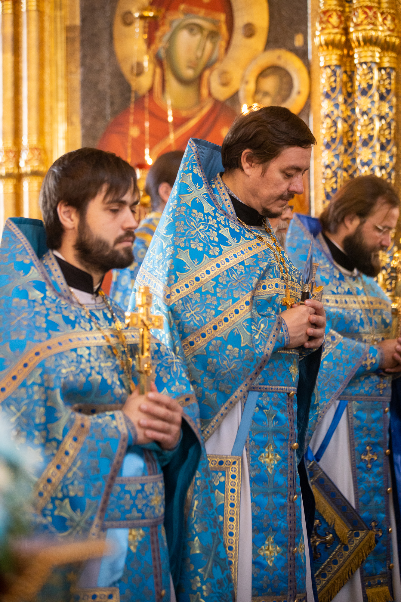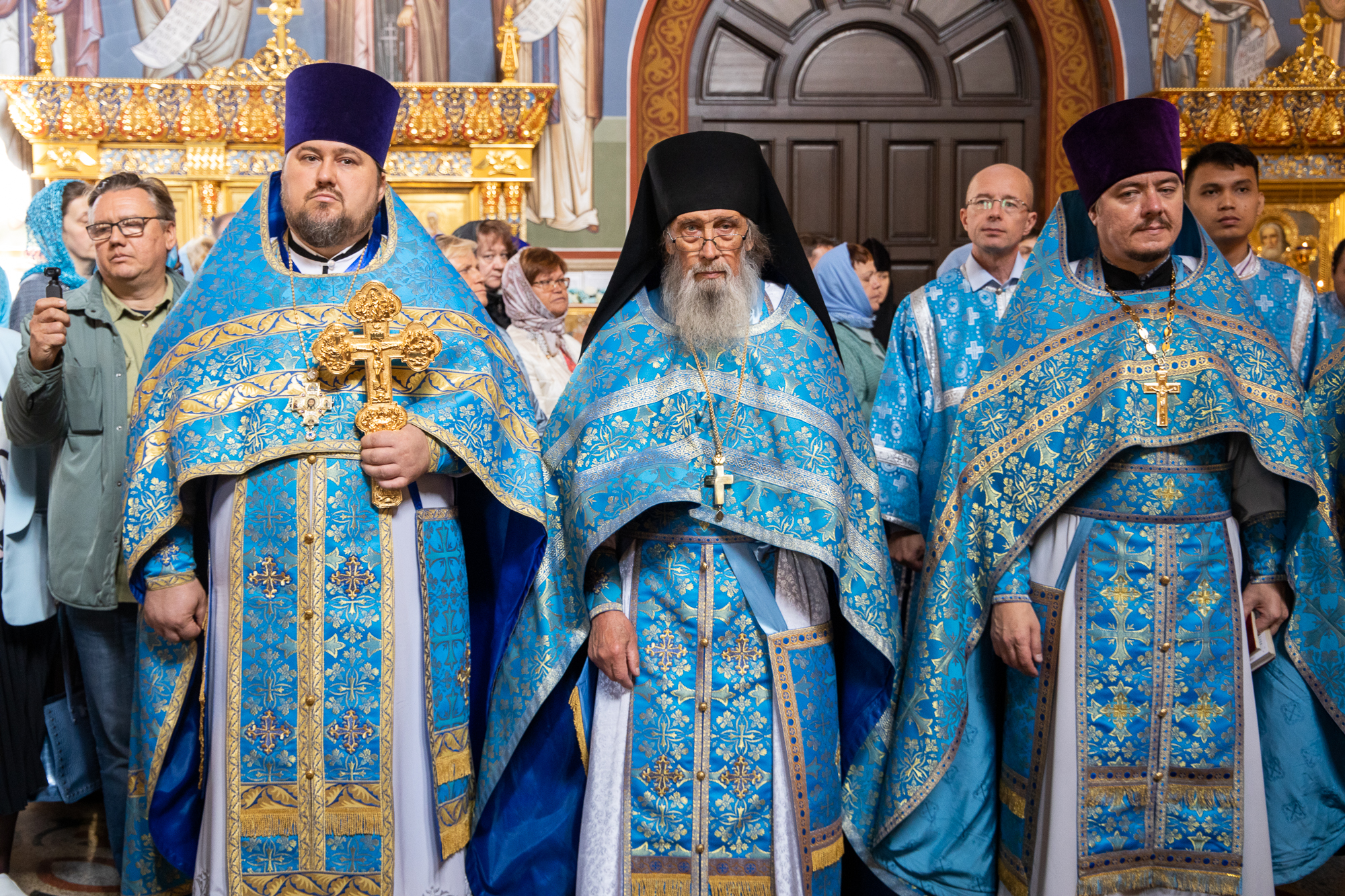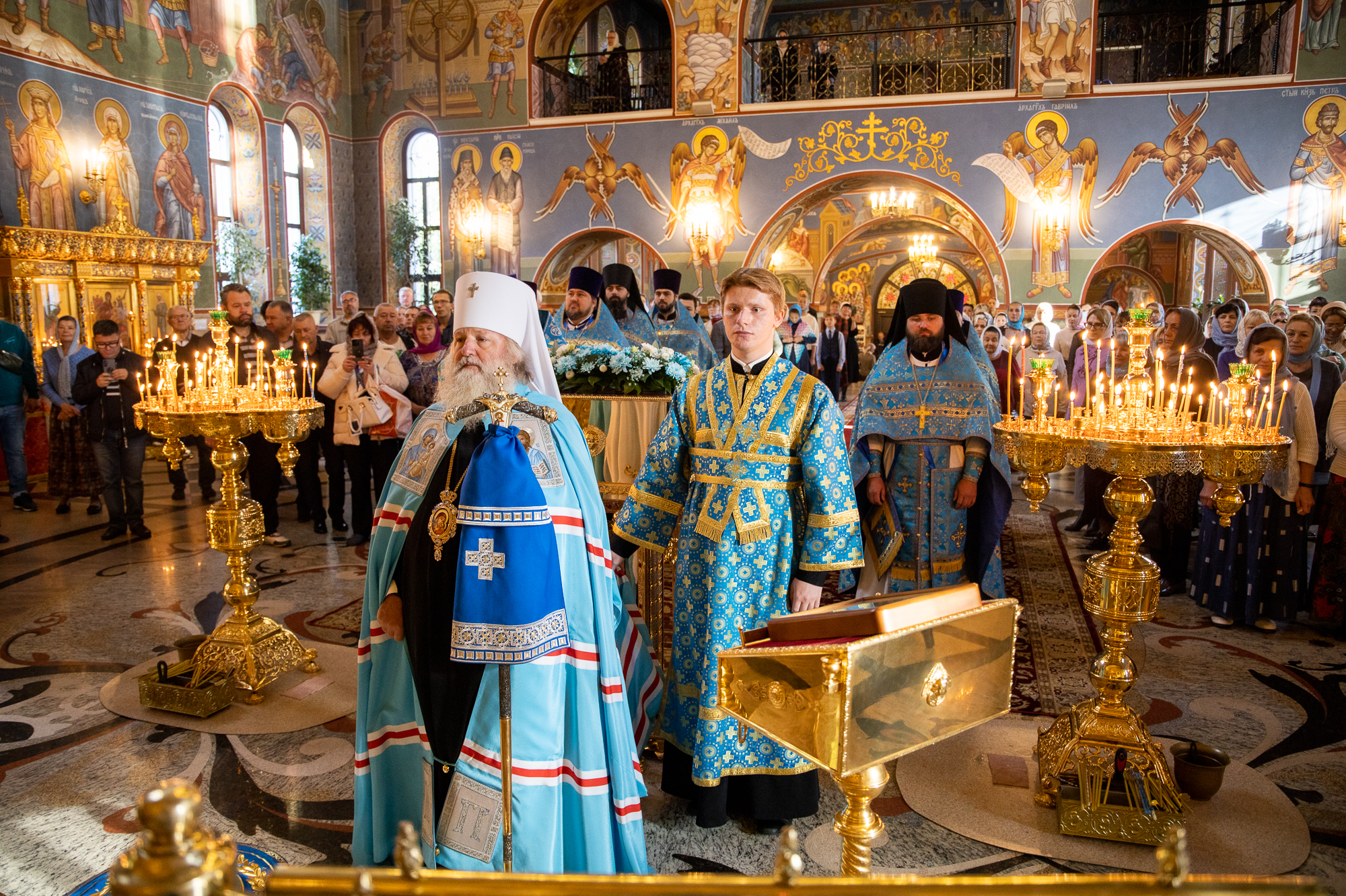 Хотел бы также поздравить всех нас с 10-летним юбилеем великого освящения этого прекрасного храма, можно сказать собора, по его величине и величественности. Ровно 10 лет назад, в день Рождества Пресвятой Богородицы Святейший Патриарх Московский и всея Руси Кирилл освятил этот храм. И все мы помним это событие и сопереживаем, как будто совершается что- то подобное сегодня. Я хоте бы поблагодарить наших строителей, Николая Калинниковича, главного нашего строителя этого храма. В 2011 году я только вступил на эту кафедру и помню те непростые времена, но мы вместе помолились и поняли, что с Богом всё возможно. Этот храм построился за кратчайшее время и в этом я усматриваю благословение Божие. Когда Господь благословил, мы построили за 2 года весь комплекс и вошли в него. Это невиданно даже при нынешних сроках возведения храмов.
