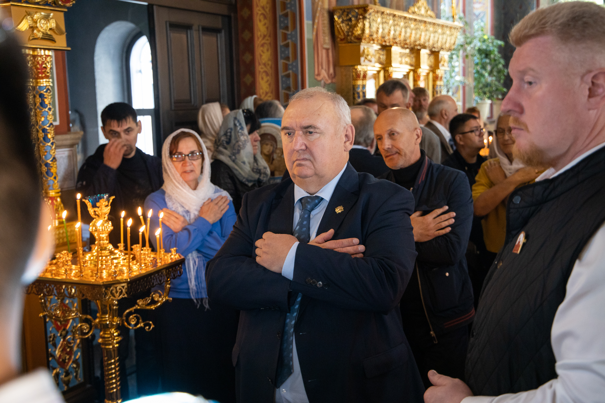 На мирной и сугубой ектениях были вознесены молитвы о Российском воинстве и о мире.