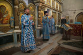 На сугубой ектении были вознесены молитвенные прошения об избавлении от коронавирусной инфекции.