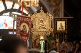 Перед начало богослужения в собор была принесена икона с частицей мощей святой преподобномученицы Марии Гатчинской.