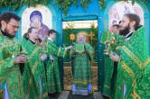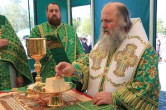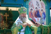 В конце Богослужения Его Высокопреосвященство поздравил всех присутствующих с праздником Святой Троицы и обратился к ним с проповедью. «Пресвятая Троице, Боже наш, слава Тебе!