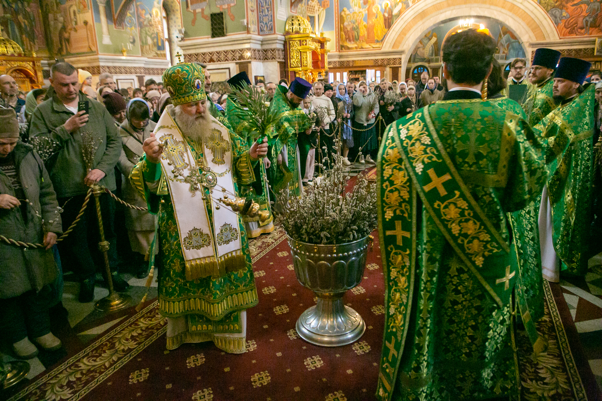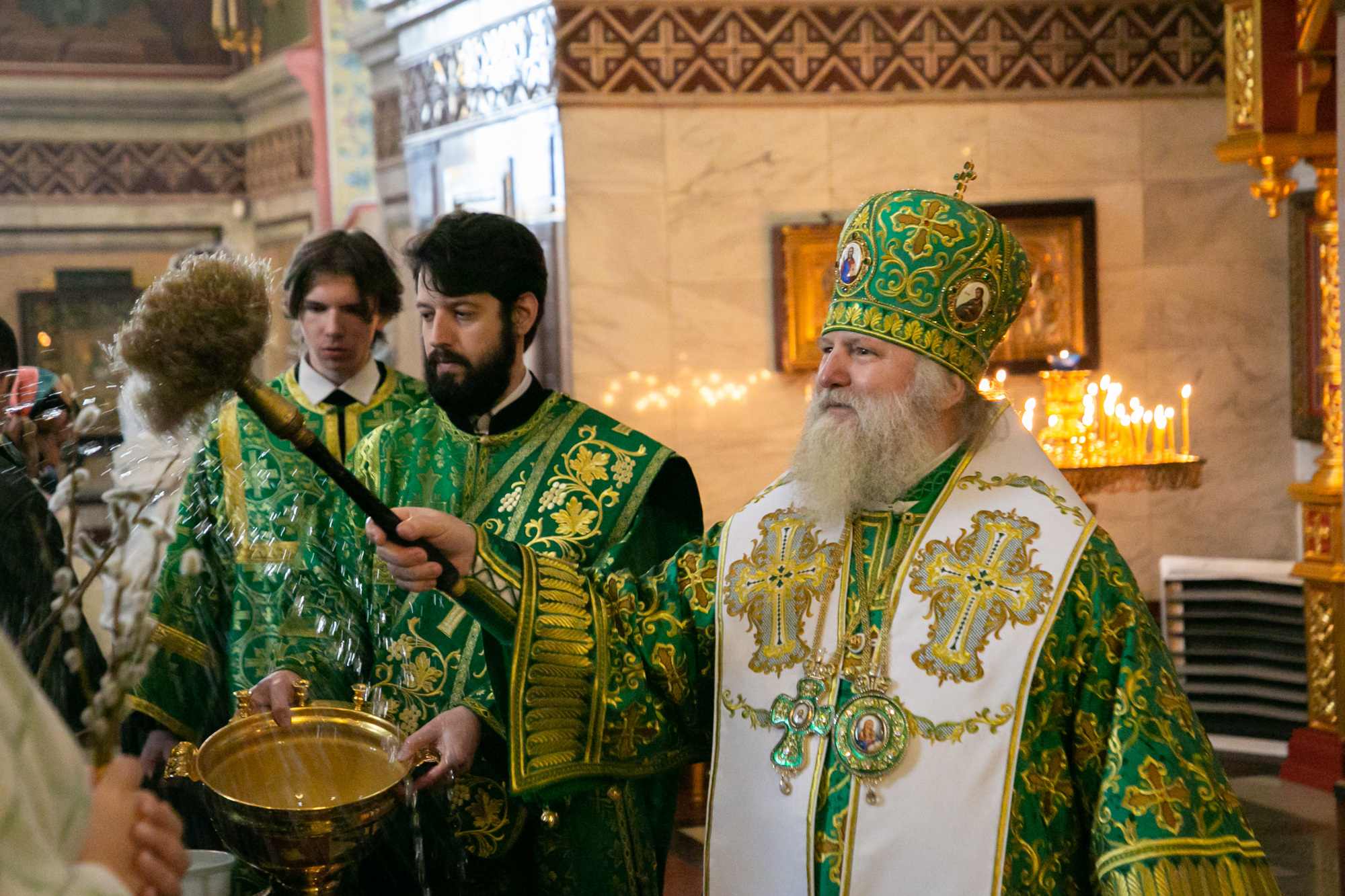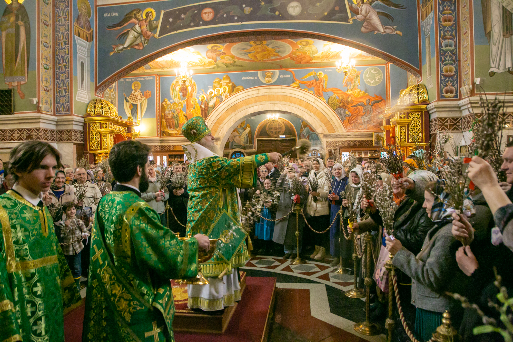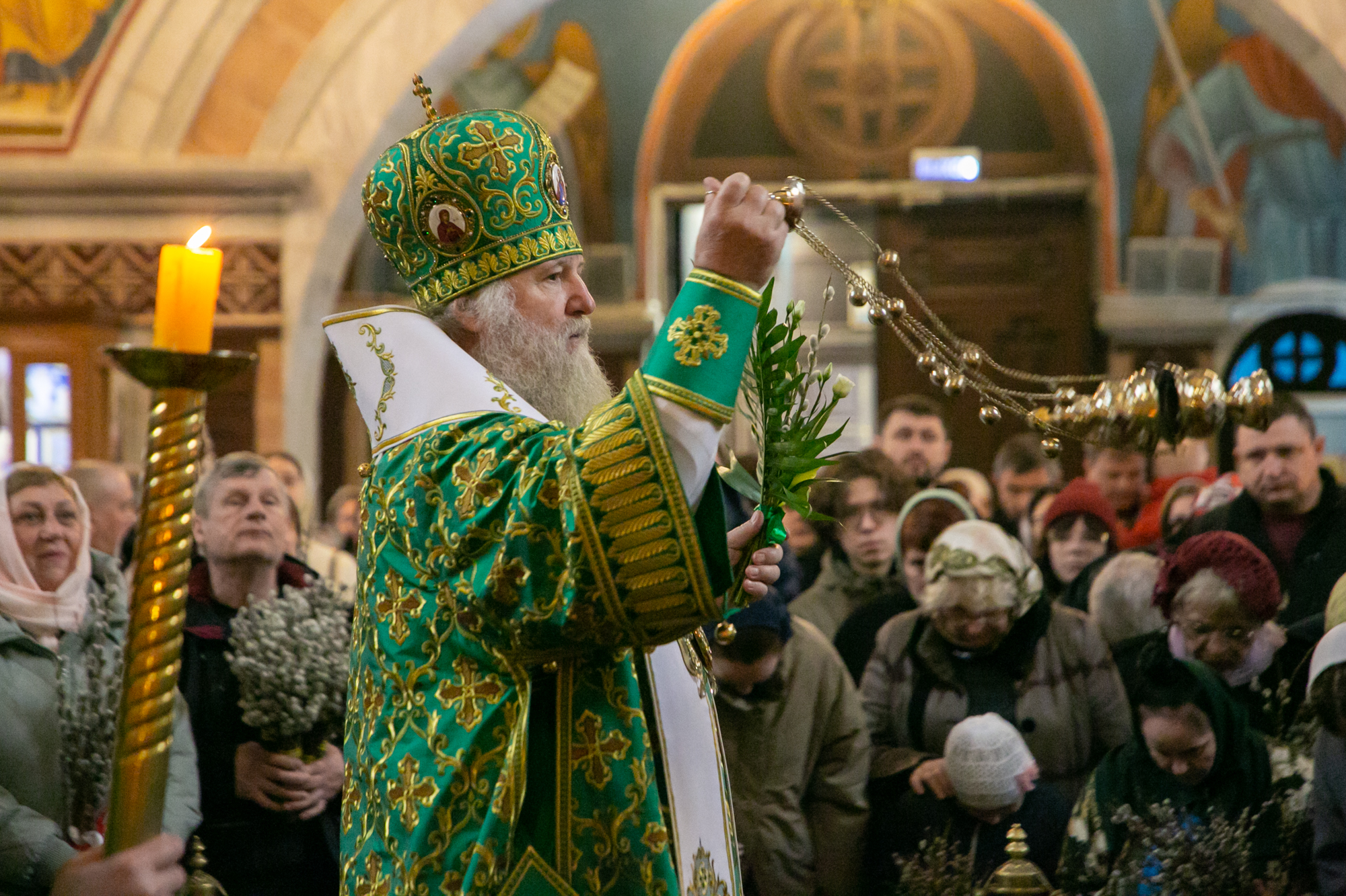 В конце Литургии митрополит Павел совершил традиционное освящение вербных и пальмовых ветвей (ваий).