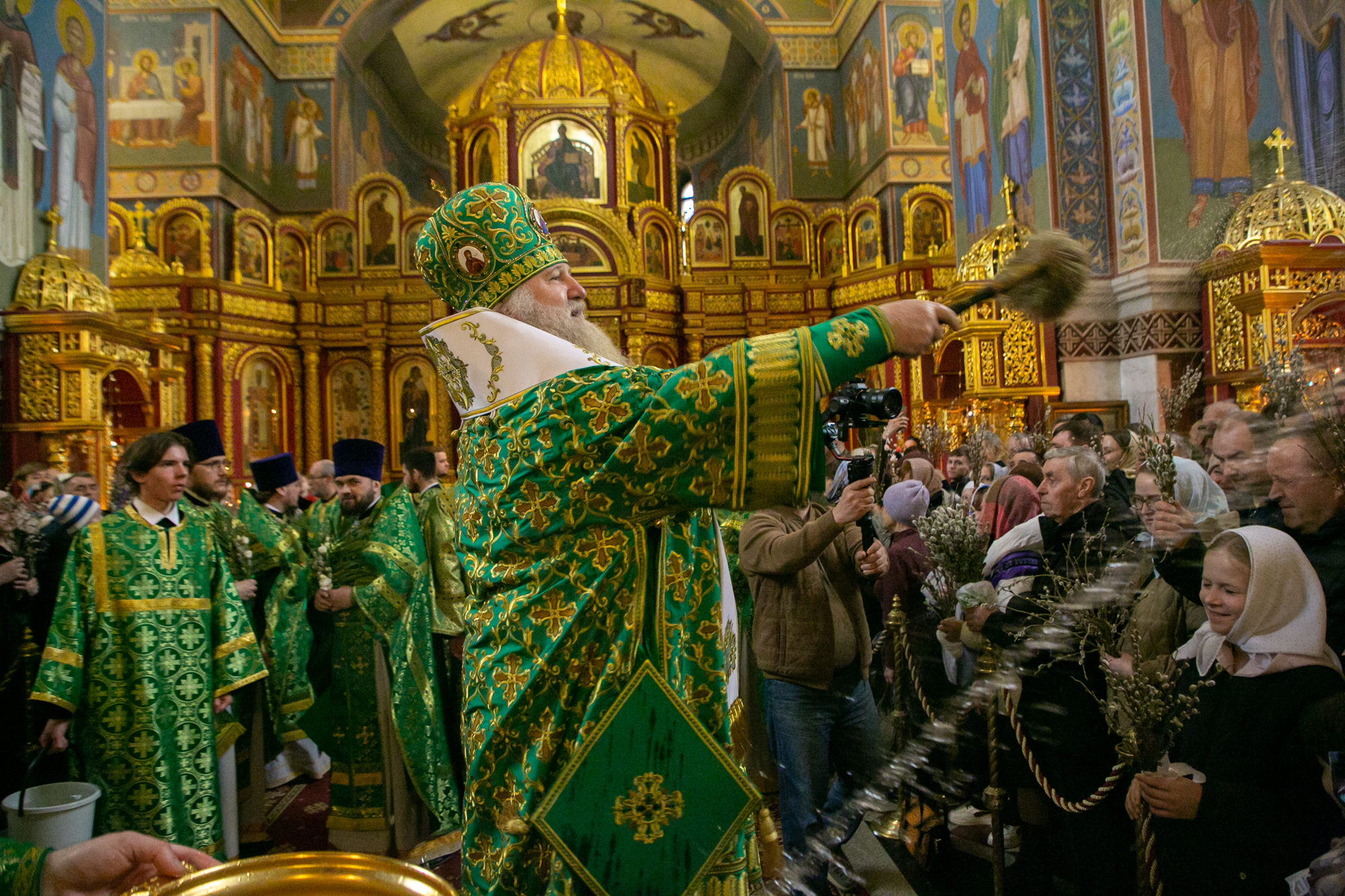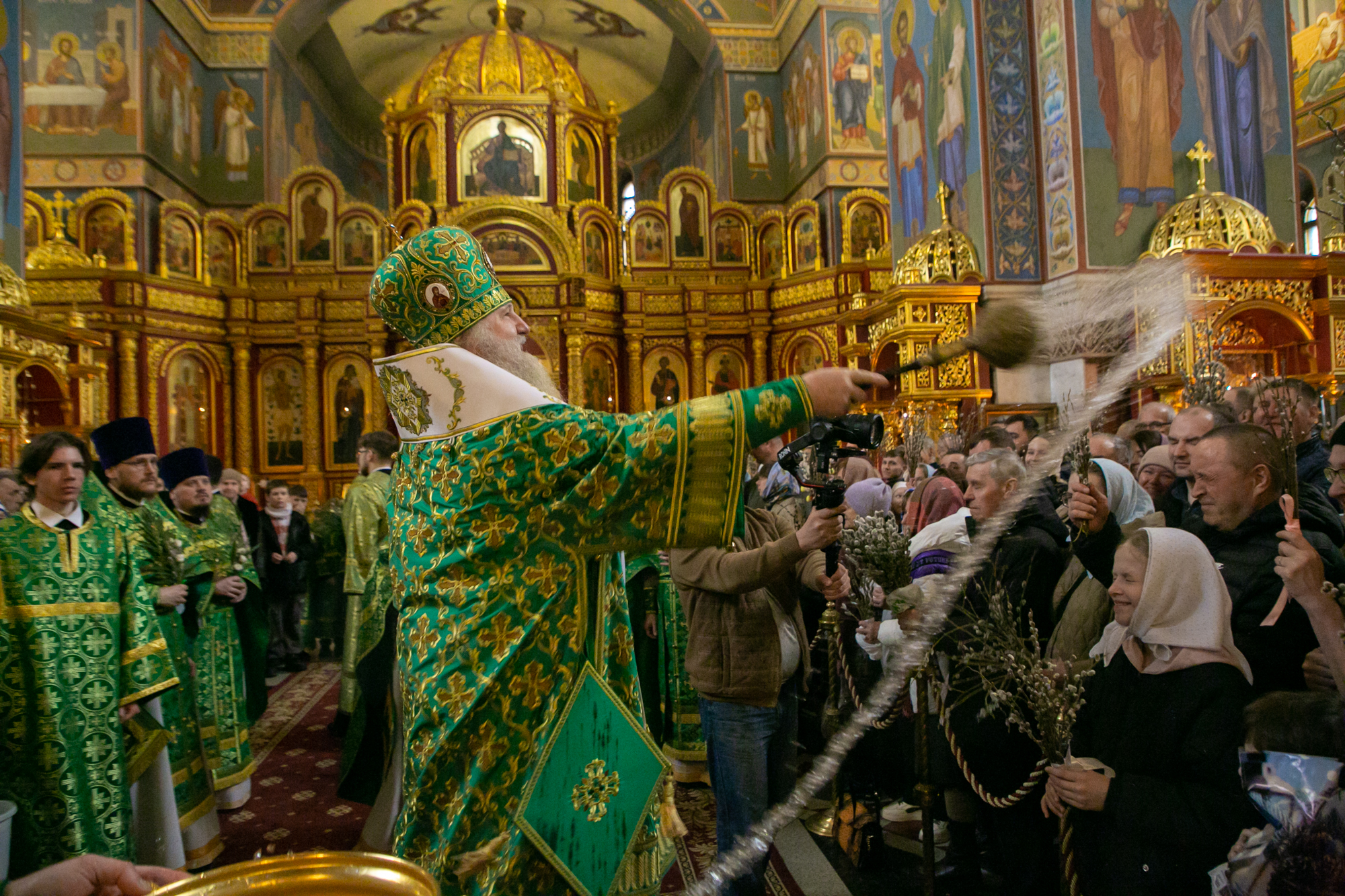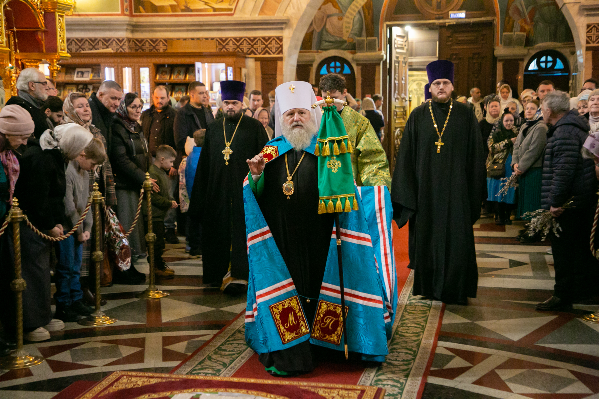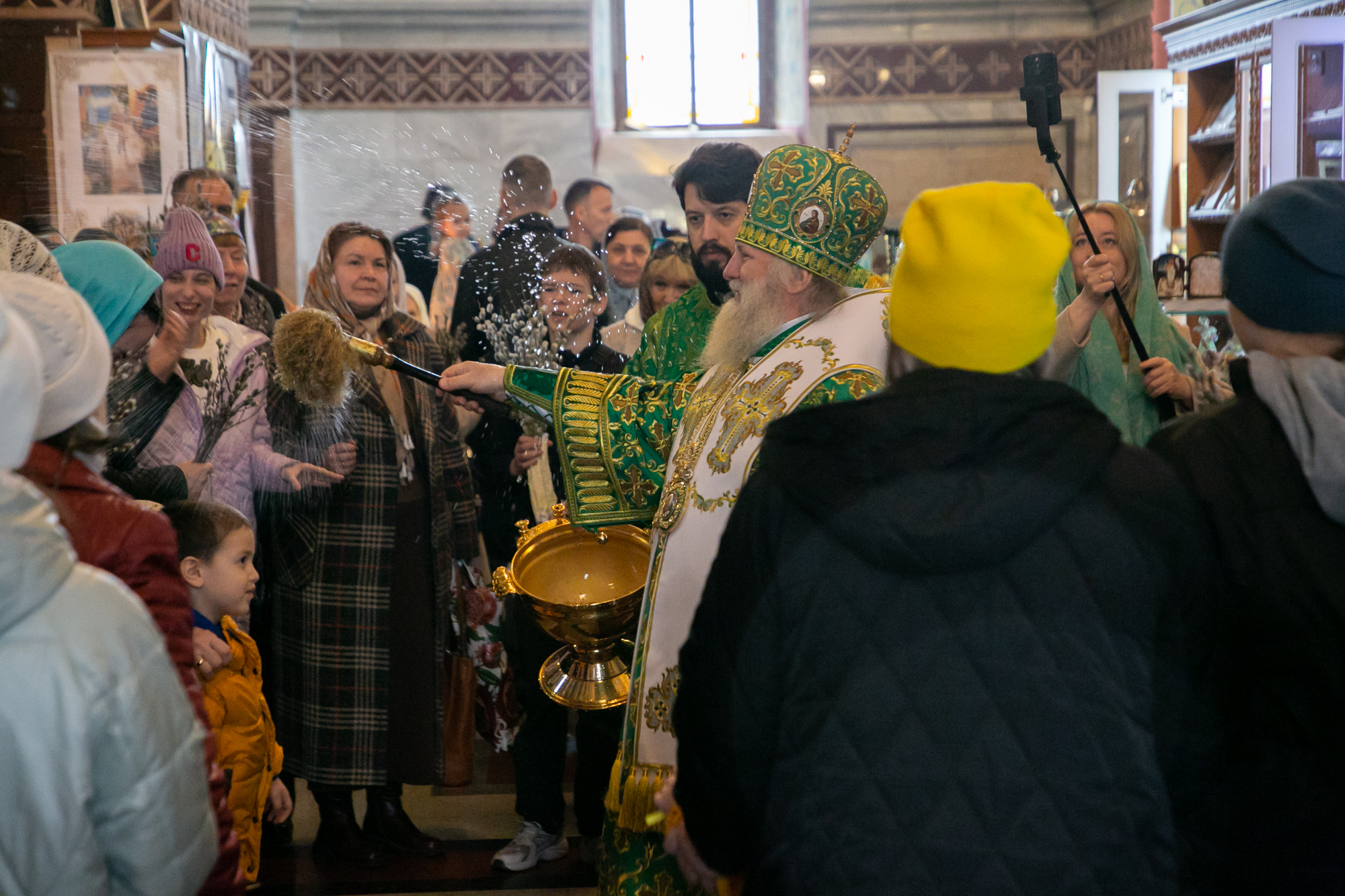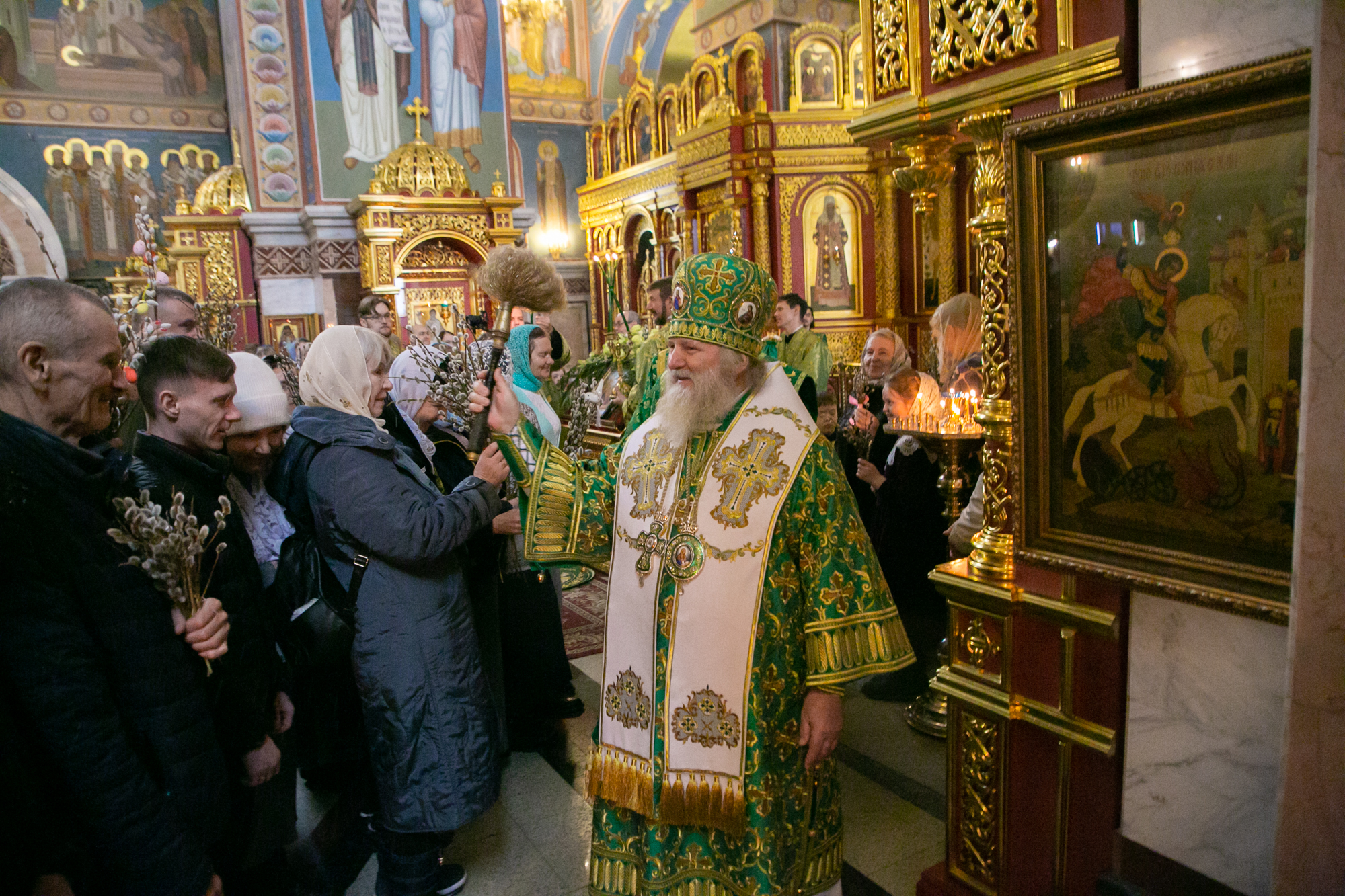 В конце Литургии митрополит Павел совершил традиционное освящение вербных и пальмовых ветвей (ваий).