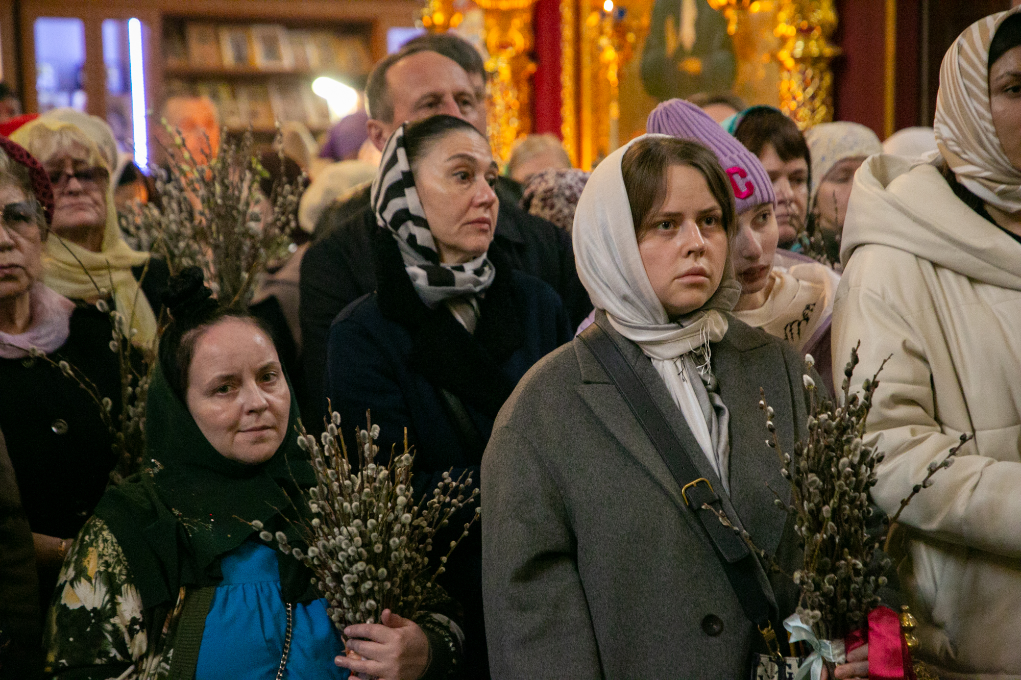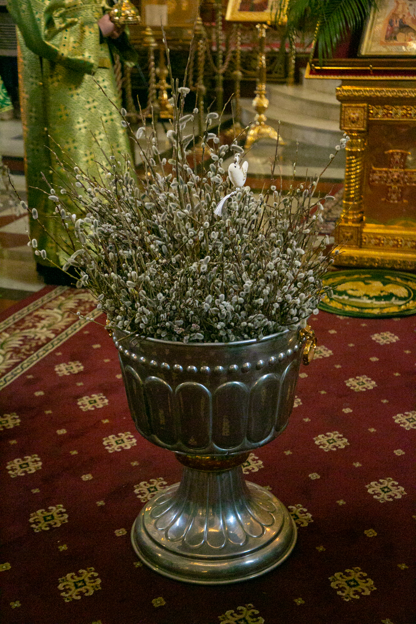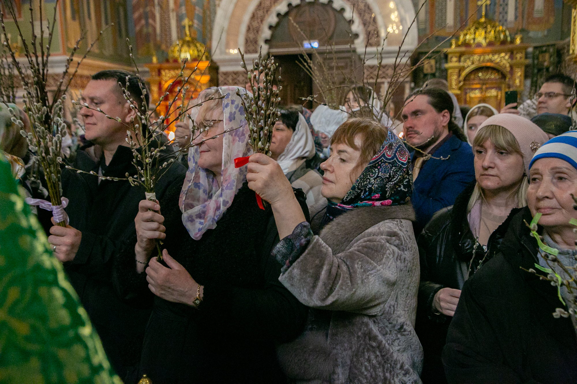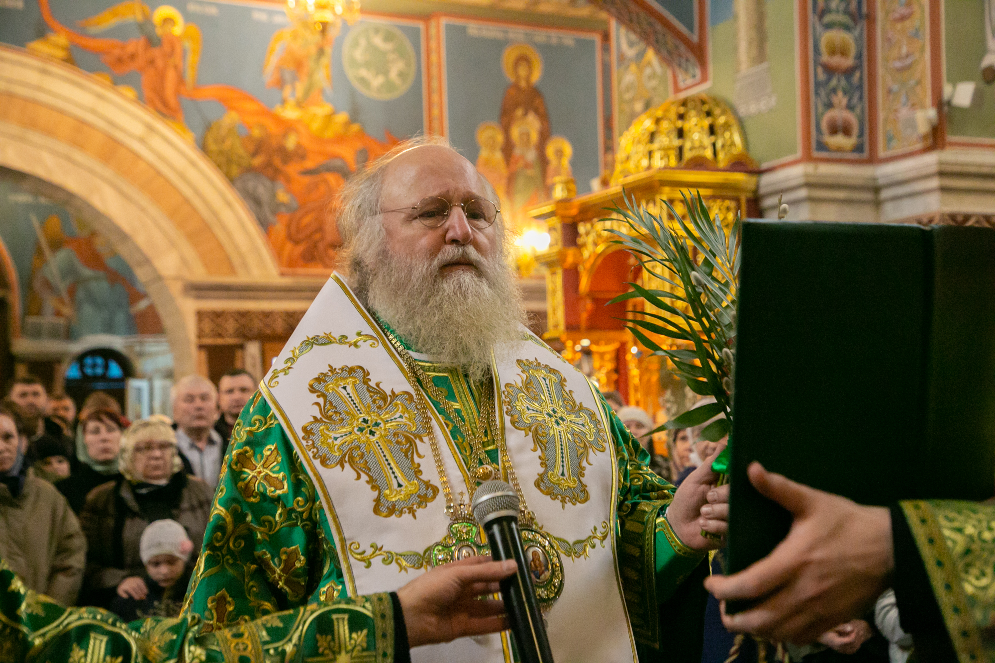 В конце Литургии митрополит Павел совершил традиционное освящение вербных и пальмовых ветвей (ваий).