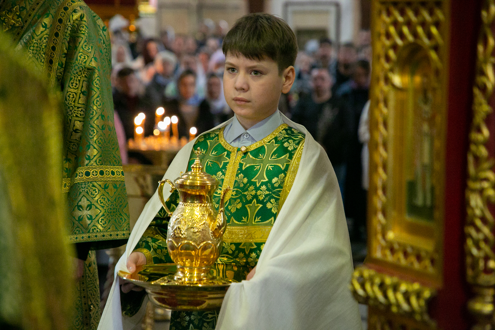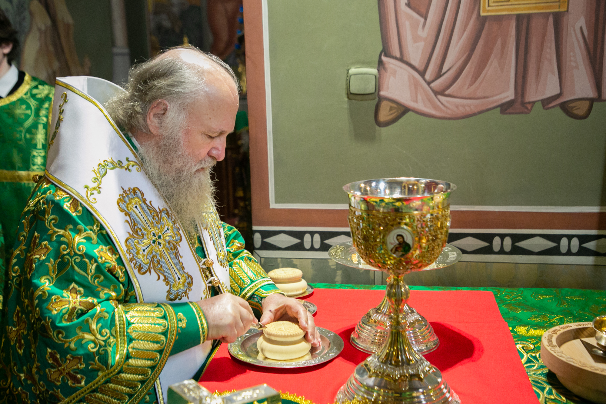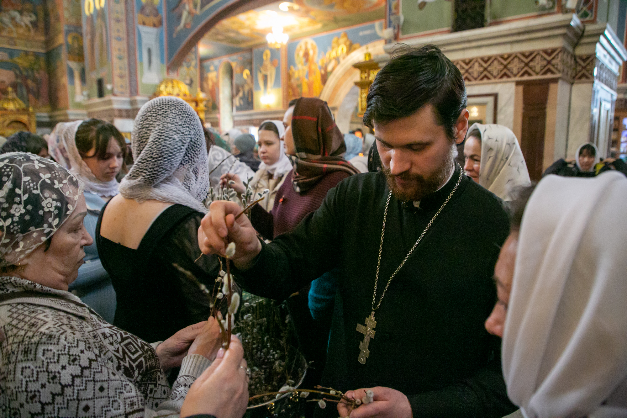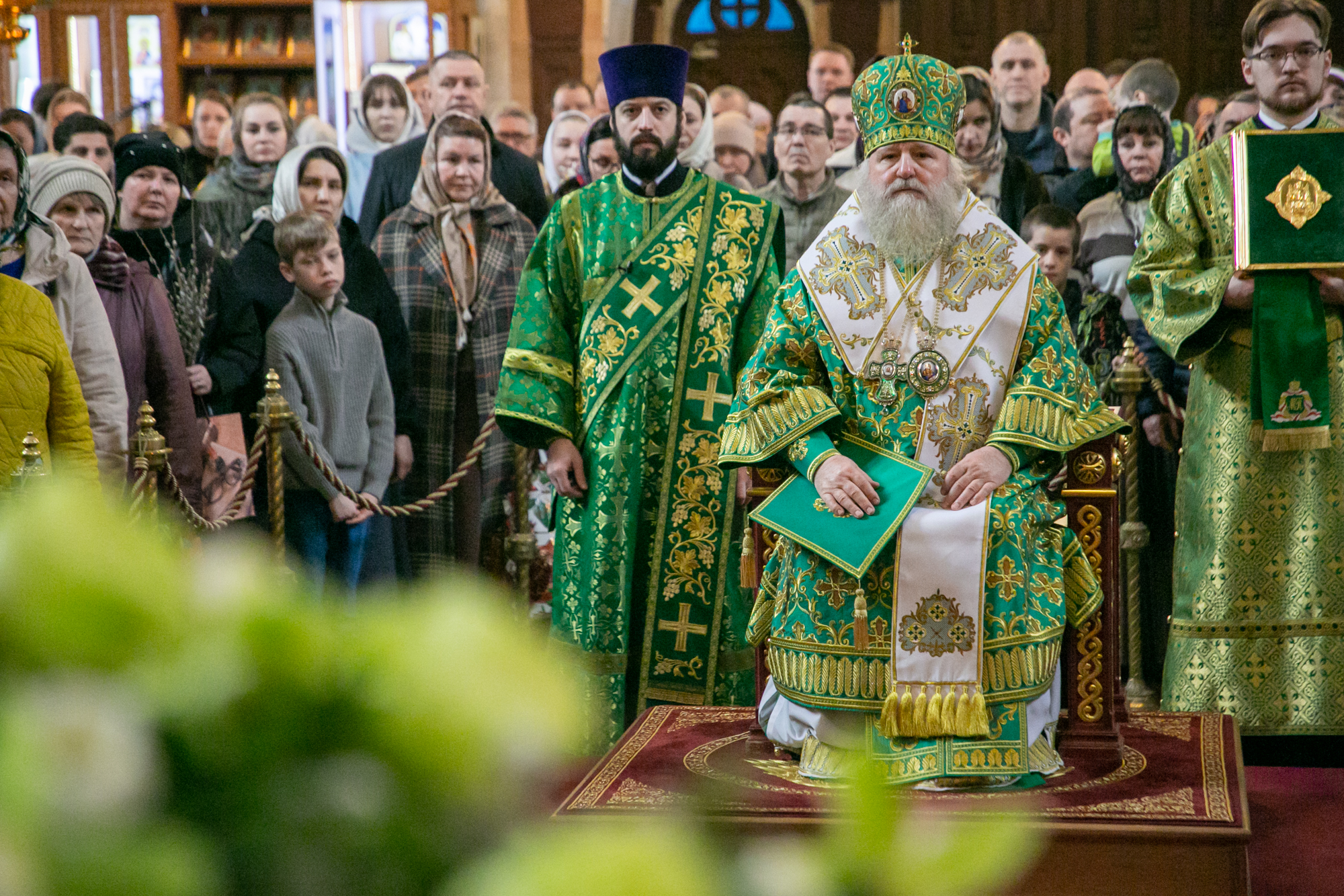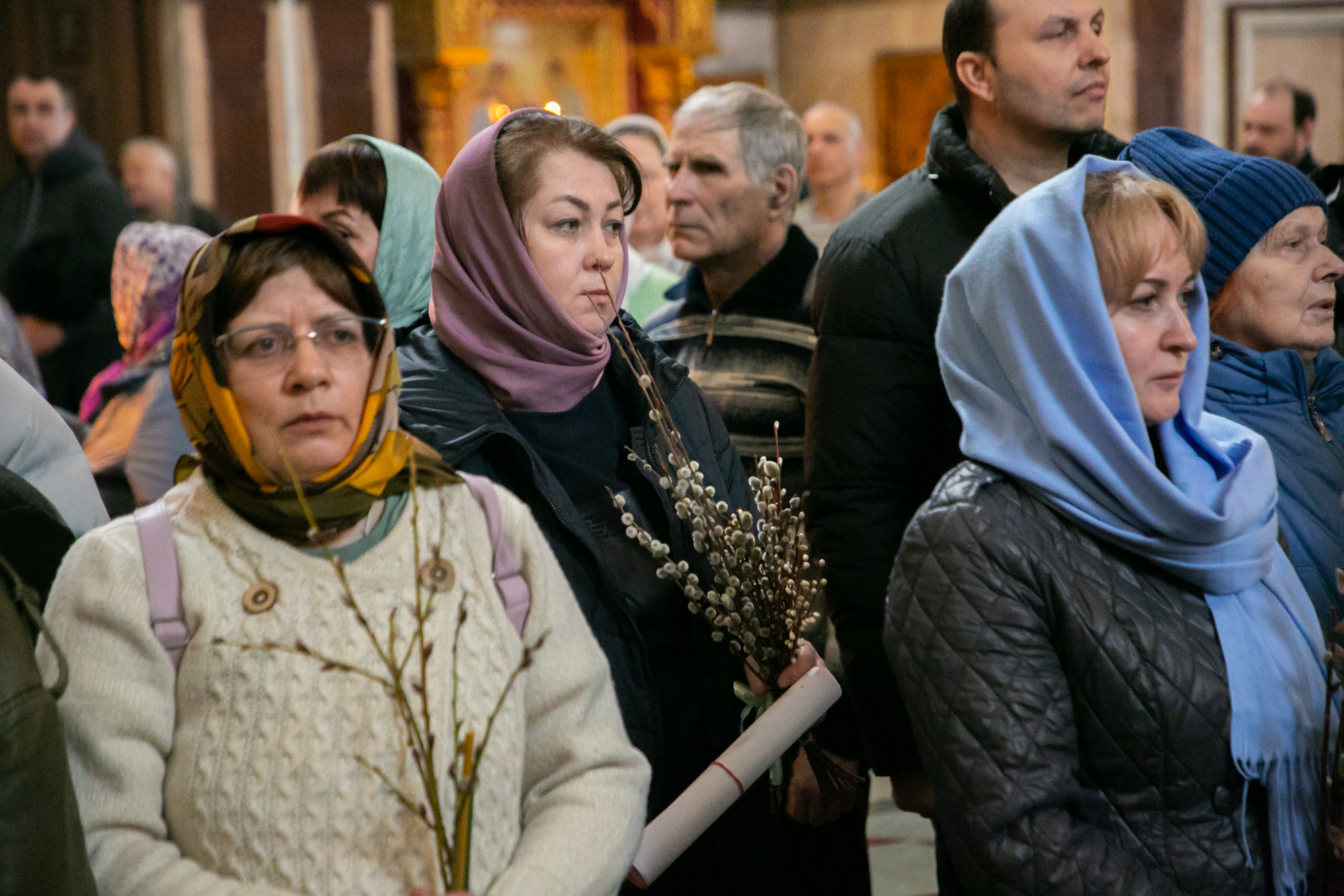В конце Литургии митрополит Павел совершил традиционное освящение вербных и пальмовых ветвей (ваий).