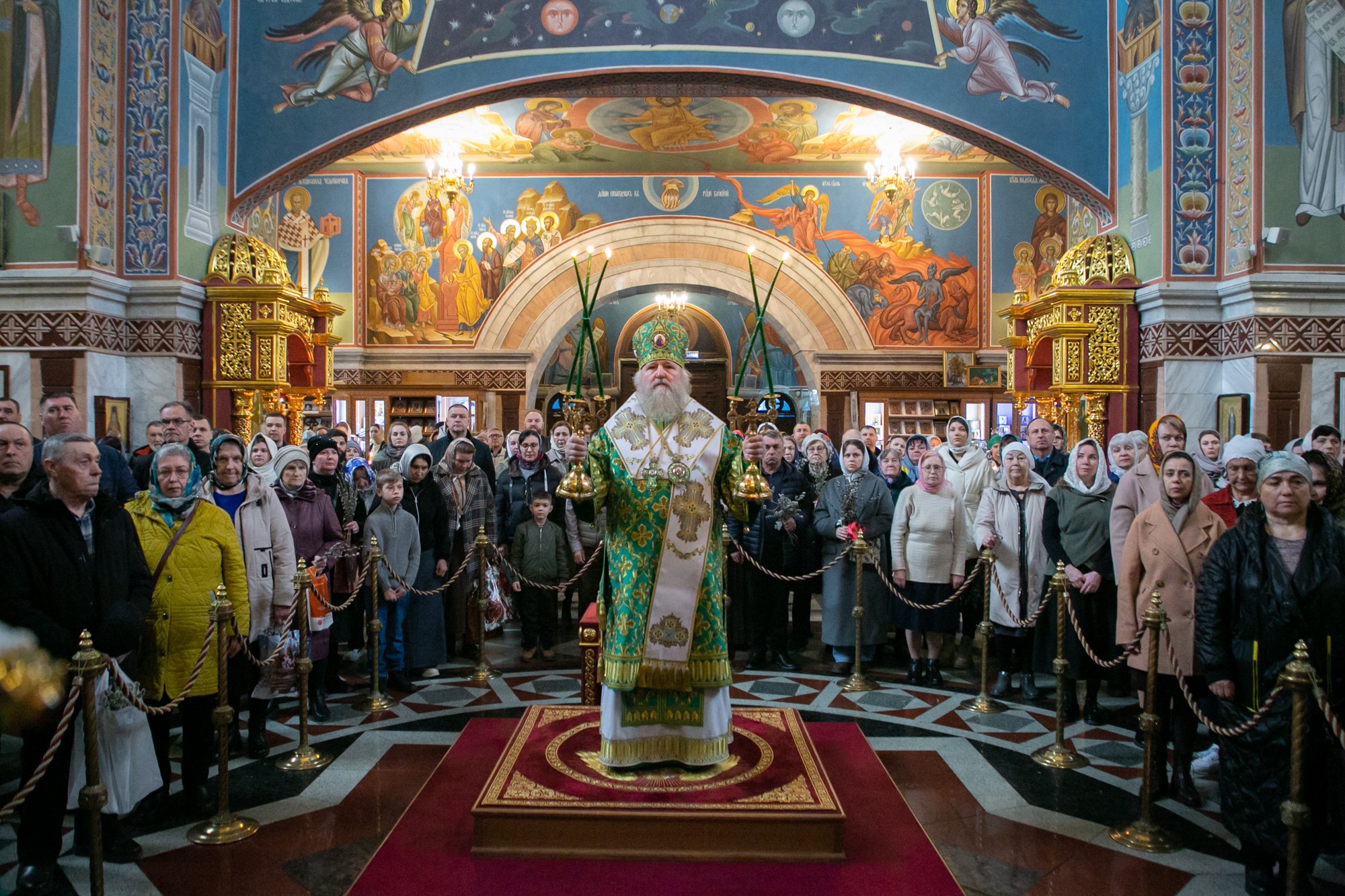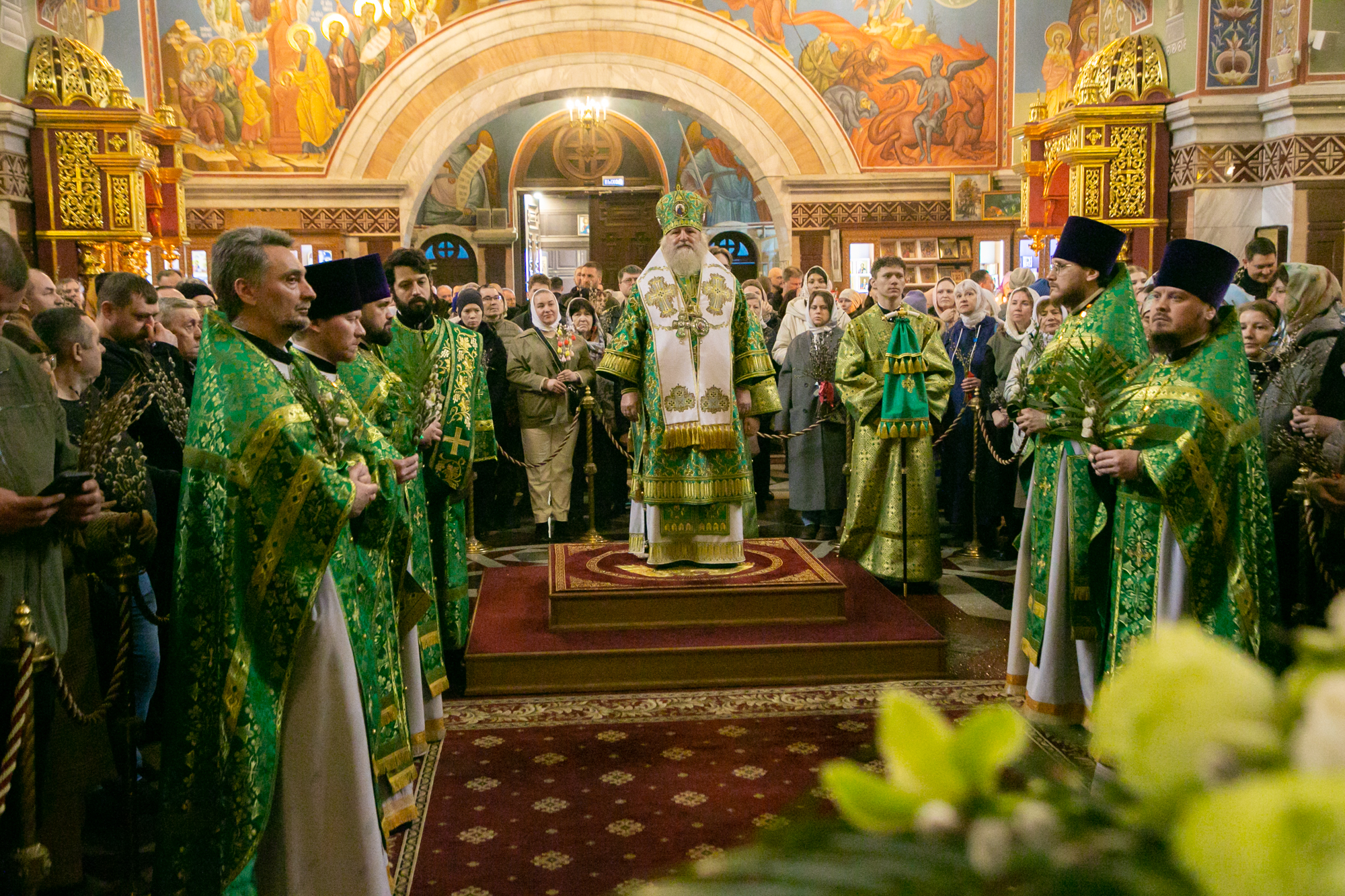 5 апреля 2026 года, в Неделю 6-ю Великого поста (ваий), праздник Входа Господня в Иерусалим, митрополит Ханты-Мансийский и Сургутский Павел совершил Божественную литургию в Воскресенском кафедральном соборе г. Ханты-Мансийска.