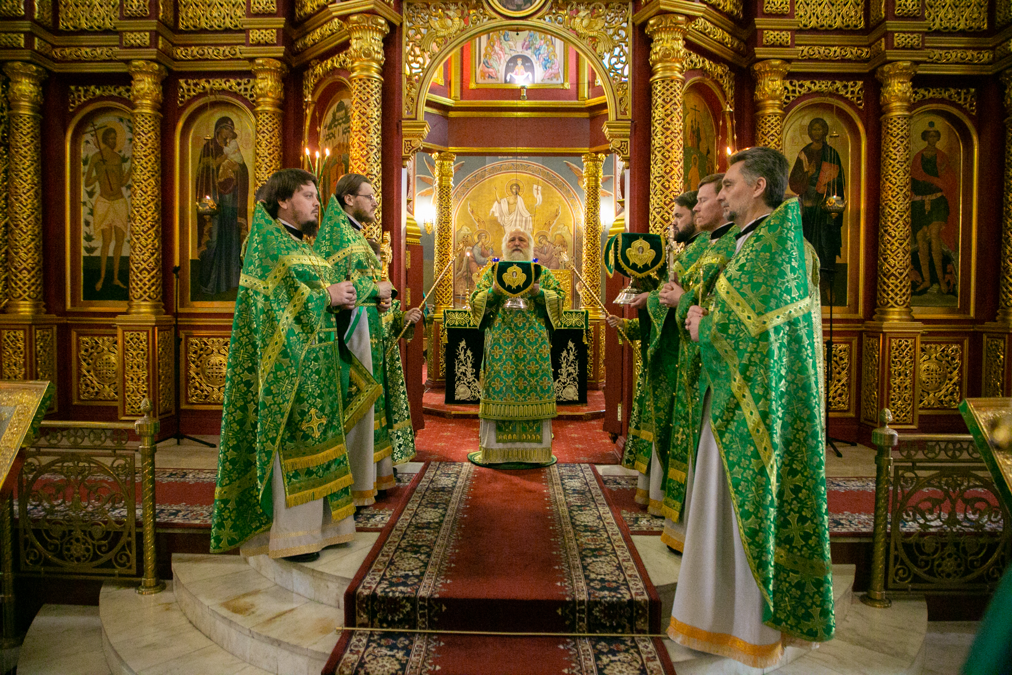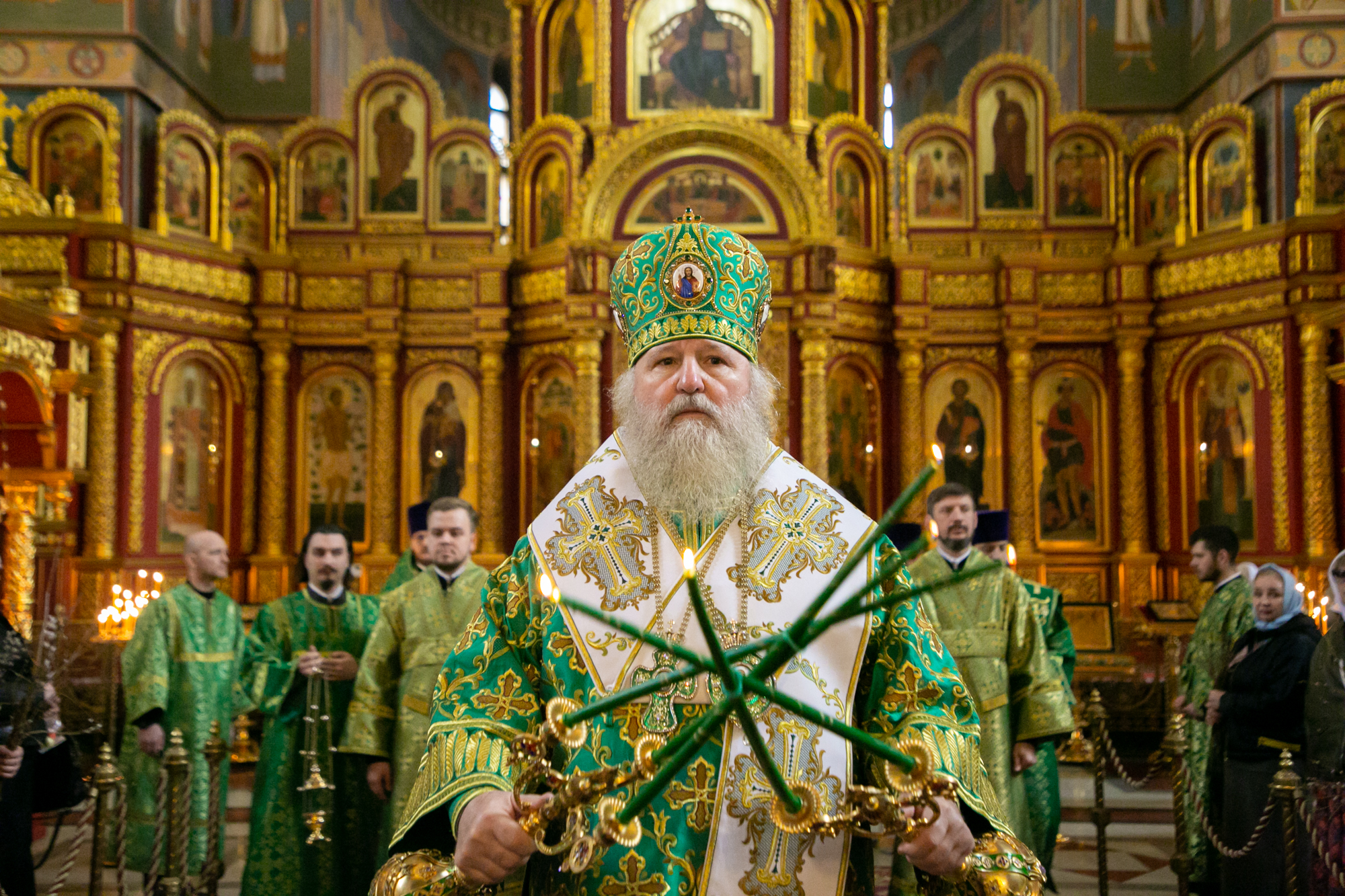 Его Высокопреосвященству сослужили: благочинный Ханты-Мансийского благочиния иерей Димитрий Губанищев, духовенство собора.