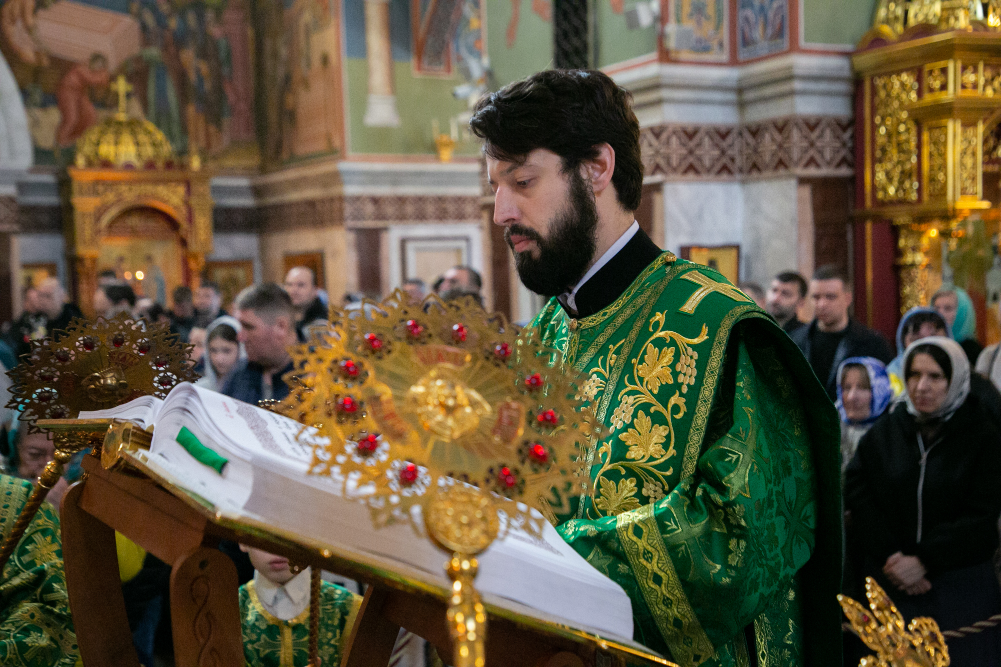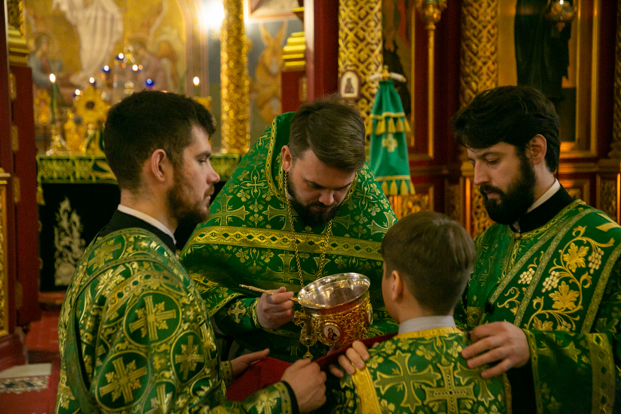 На мирной и сугубой ектениях были вознесены молитвы о Российском воинстве и о мире.