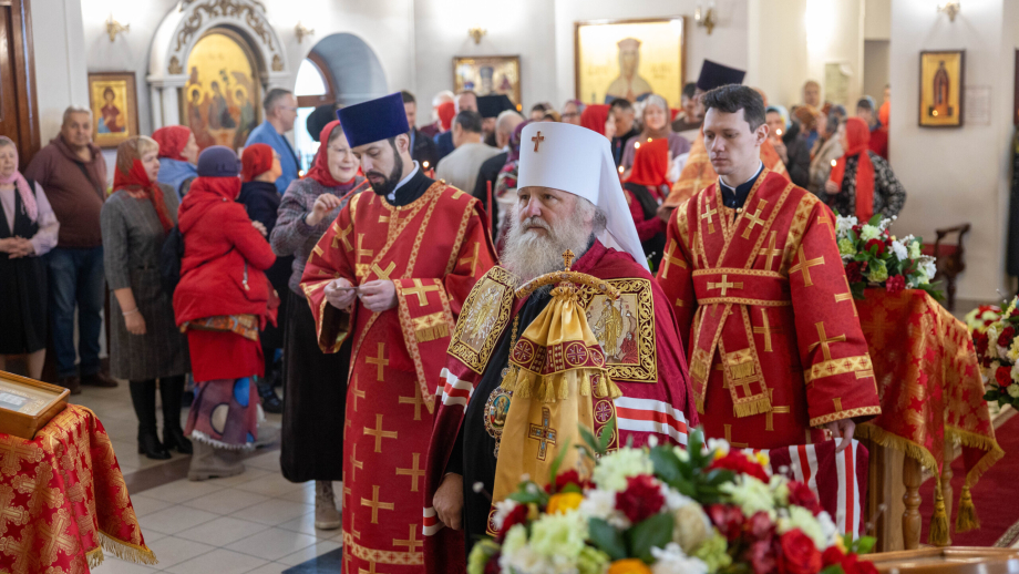 Его Высокопреосвященству сослужили: благочинный Нижневартовского районного благочиния иерей Олег Гордеев, благочинный Нижневартовского городского благочиния протоиерей Сергий Шевченко, секретарь Ханты-Мансийской епархии игумен Антоний (Кирпичев), иерей Владимир Макаров. Диаконский чин возглавил диакон Матвеев Даниил.