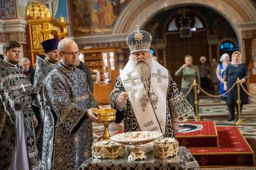 В пятницу первой седмицы Великого поста митрополит Ханты-Мансийский и Сургутский Павел совершил Литургию Преждеосвященных Даров в Воскресенском кафедральном соборе г. Ханты-Мансийска