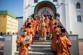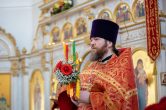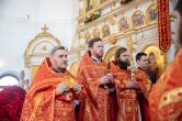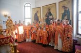 Его Высокопреосвященству сослужили: благочинный Нижневартовского городского благочиния протоиерей Сергий Шевченко, настоятель храма иерей Олег Гордеев, секретарь Ханты-Мансийской епархии игумен Антоний (Кирпичев), иерей Константин Глухарев, иерей Владимир Макаров, иерей Алексий Фролов, диакон Даниил Матвеев.
