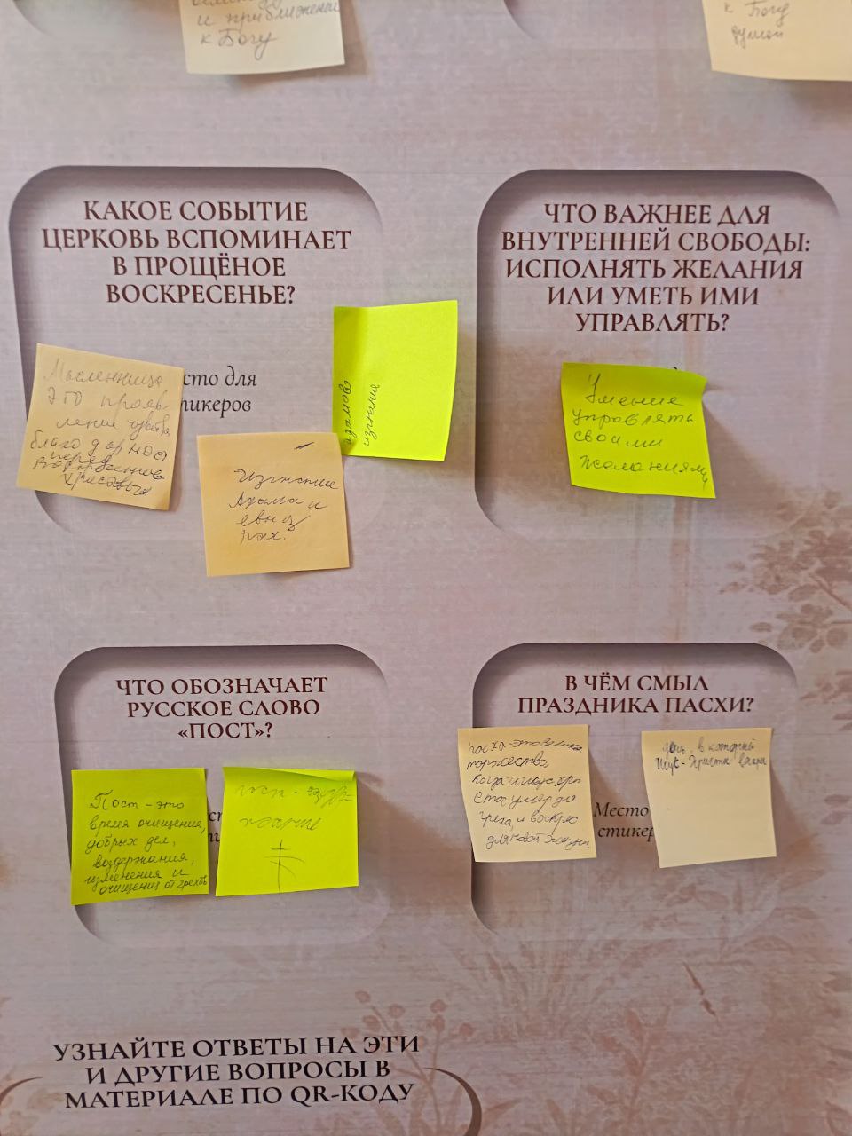 Также, в храме Святаго праведного Иоанна Кронштадского был установлен банyер с интерактивной частью, в которой каждый заинтересовавшийся мог оставить ответы на вопросы, связанные с отмечаемыми событиями. Участвующие в акции с радостью отметили пользу проведенной акции для духовного развития и понимания истинного смысла праздника и Великого Поста.