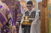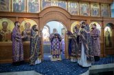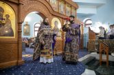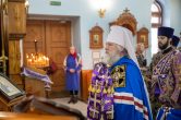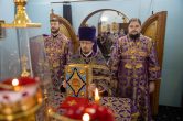 Его Высокопреосвященству сослужили: благочинный Нижневартовского городского благочиния протоиерей Сергий Шевченко, секретарь Ханты-Мансийской епархии игумен Антоний (Кирпичев), настоятель храма иерей Виталий Габак. Диаконский чин возглавил диакон Даниил Матвеев.