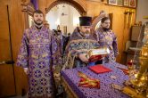 Его Высокопреосвященству сослужили: благочинный Сургутского городского благочиния протоиерей Антоний Исаков, настоятель храма иерей Николай Ведерников, секретарь Ханты-Мансийской епархии игумен Антоний (Кирпичев), иерей Григорий Пашпорин, диакон Даниил Матвеев.