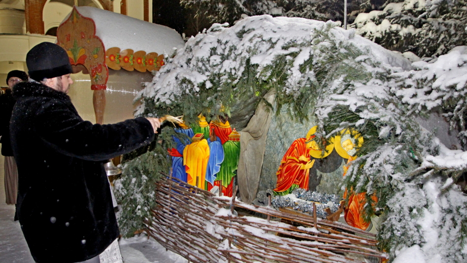 В Рождественский сочельник освящен вертеп  на территории храма  Святой Троицы  пгт.Пойковский.
