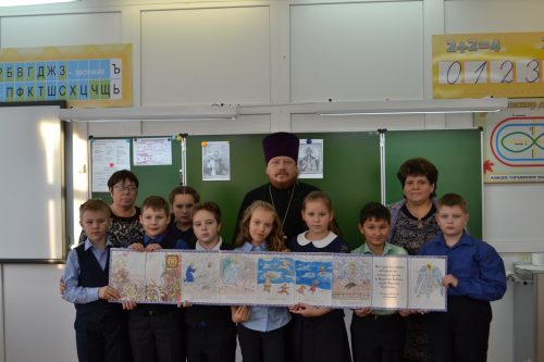 В течение пяти занятий, которые провела учитель Воскресной школы Прихода, Светлана Анатольевна Ахметова, дети познакомились с темами «Святые образы в символике Российского государства», «Святые воины Руси Великой», «Дружба — что это такое?», «Крещение Руси», «Почитай родителей своих».