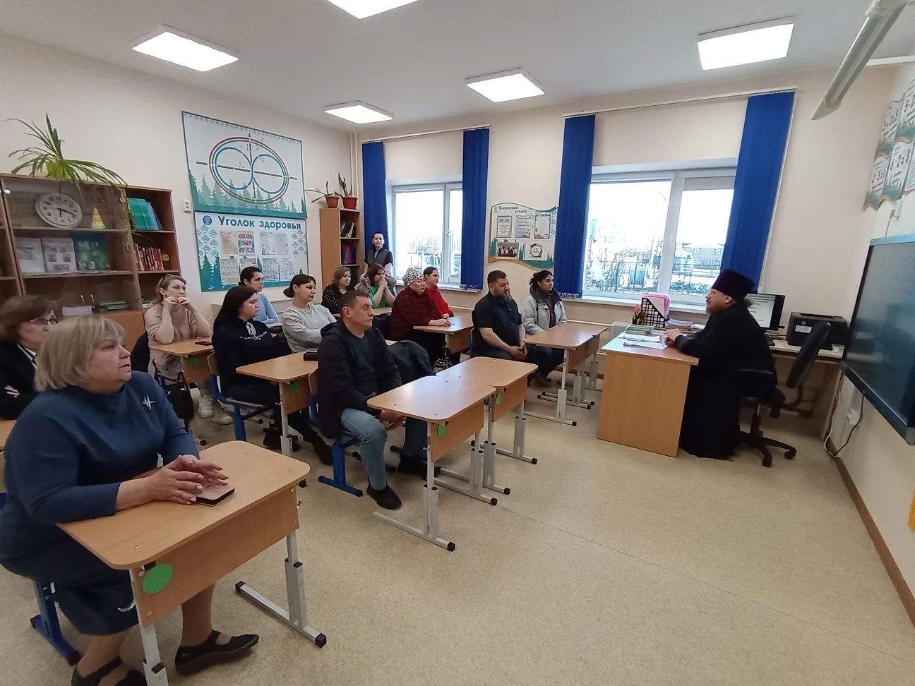 В Салыме священник принял участие в родительском собрании в рамках подготовки к преподаванию курса ОРКСЭ