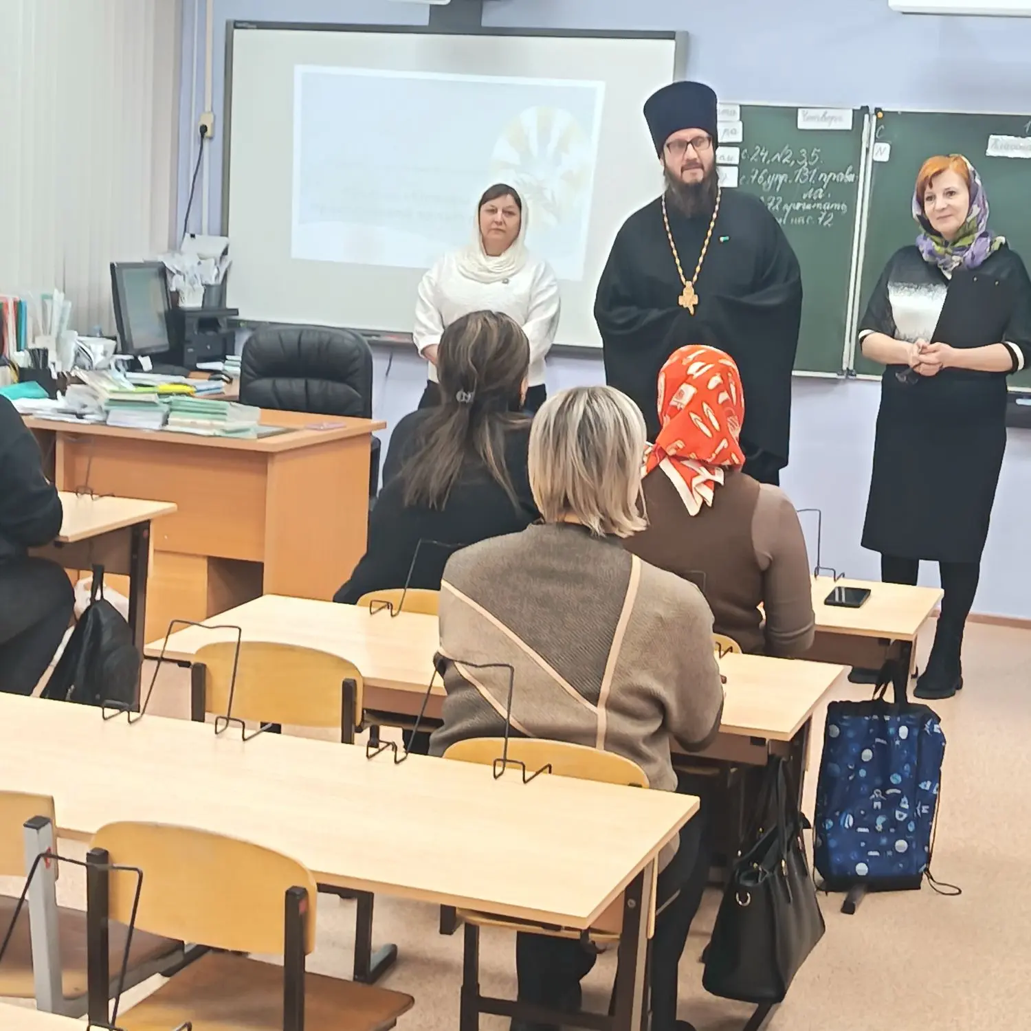 11 марта 2026 года в МОБУ СОШ № 8 прошла встреча с родителями учеников третьих классов. Иерей Олег Саватеев, совместно с Татьяной Петросовой и Галиной Кривенской, провели беседу на тему «Основы православной культуры». В ходе встречи иерей Олег Саватеев рассказал о традициях и нравственном воспитании детей, акцентируя внимание на том, как на Руси дети относились к своим родителям, о необходимости знания истории православной культуры. Обсудили понятия добра и зла, а также о значимость слов — о том, как они могут, как погубить человека, так и спасти. В конце собрания родители активно задавали вопросы, что свидетельствует о высоком интересе к теме и желании глубже понять основы православной культуры и ее влияние на воспитание детей. Встреча прошла в теплой и доверительной атмосфере.