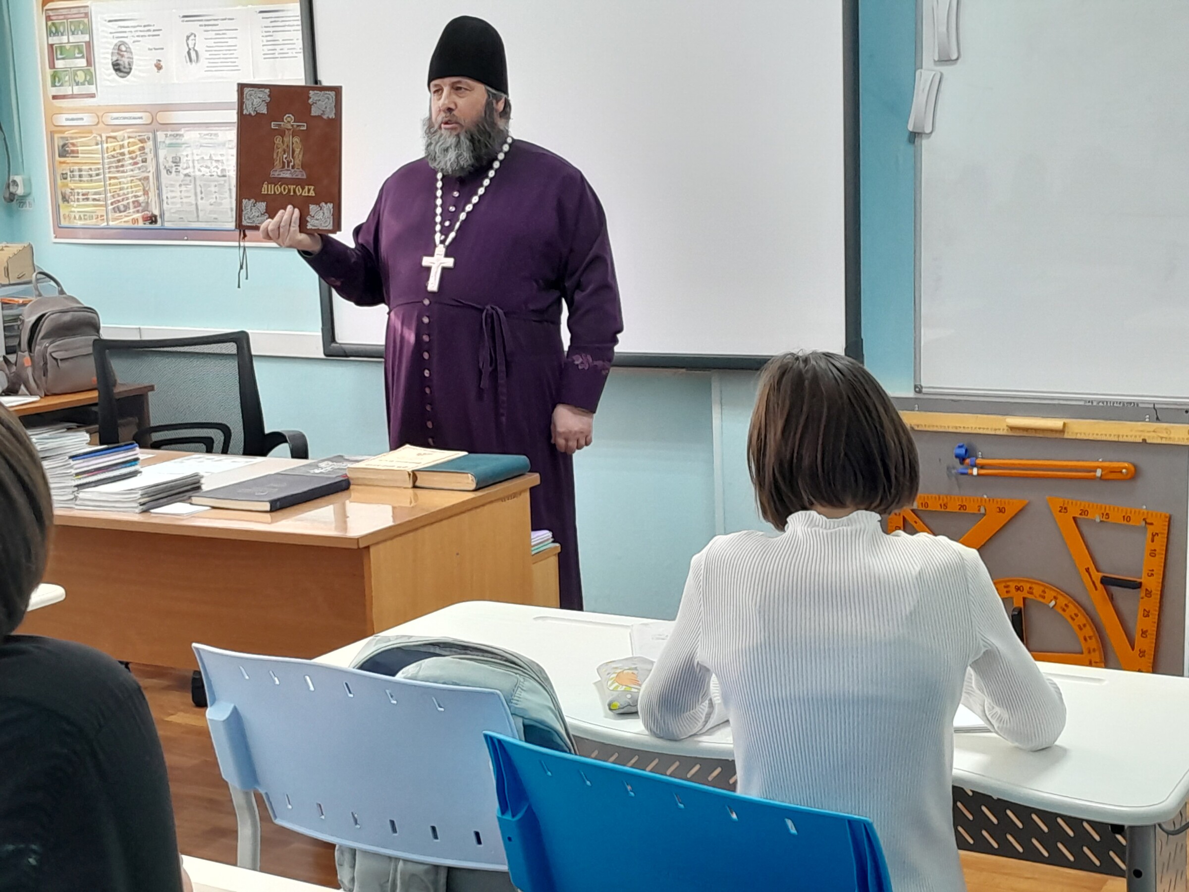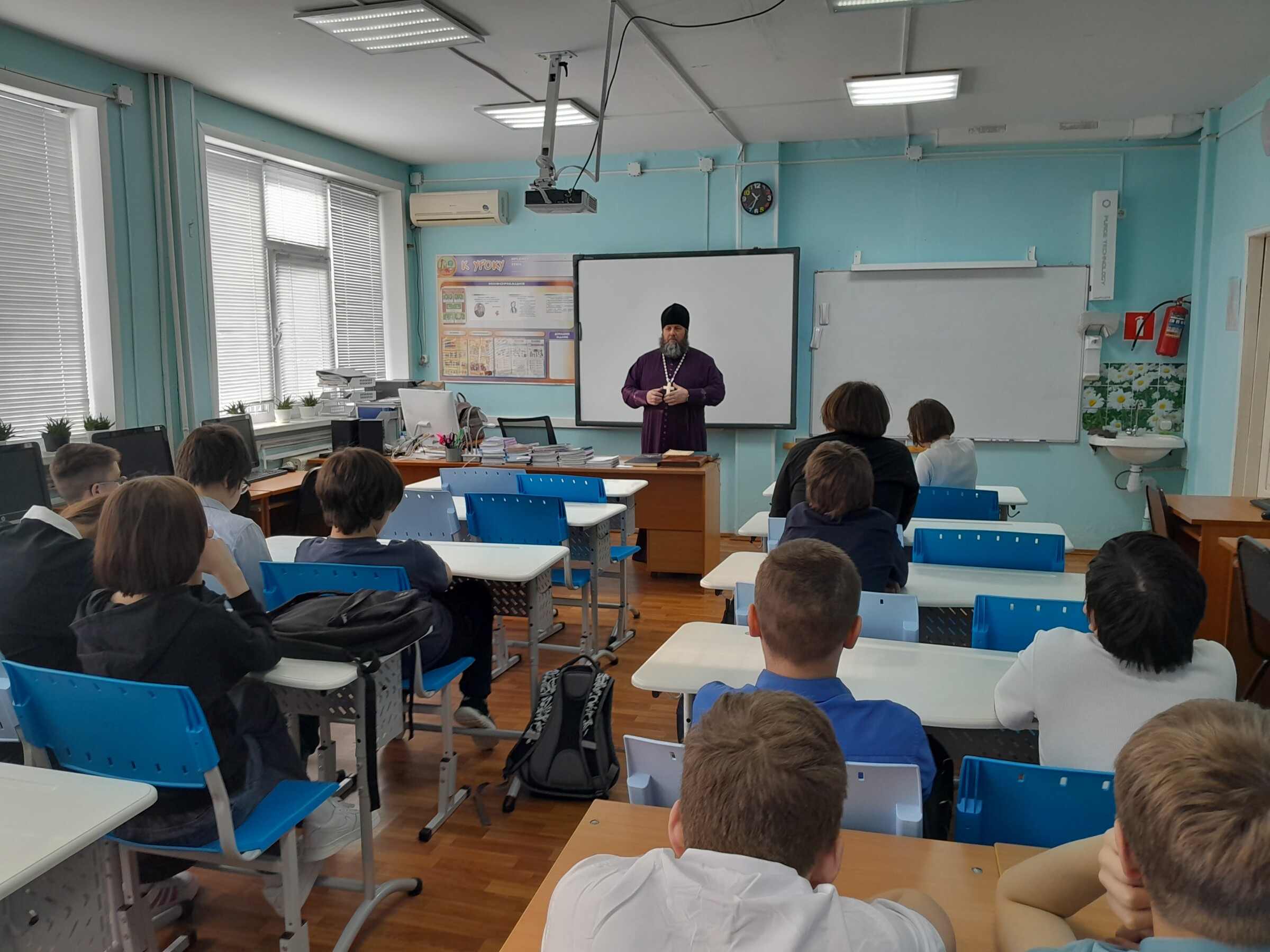 Кроме предложенной темы, настоятель Свято-Евфимиевского храма обратил внимание присутствующих на то, что сейчас идет Великий пост, особо остановились на межличностных отношениях в школьной среде. Священник отметил, что Великий пост — это время духовного обновления, направленное на восстановление в человеке образа Божия через покаяние, молитву и воздержание. Смысл поста заключается не в диете, а в борьбе со страстями, освобождении души для любви к Богу и ближнему, что делает его подготовкой к Светлому Христову Воскресению.