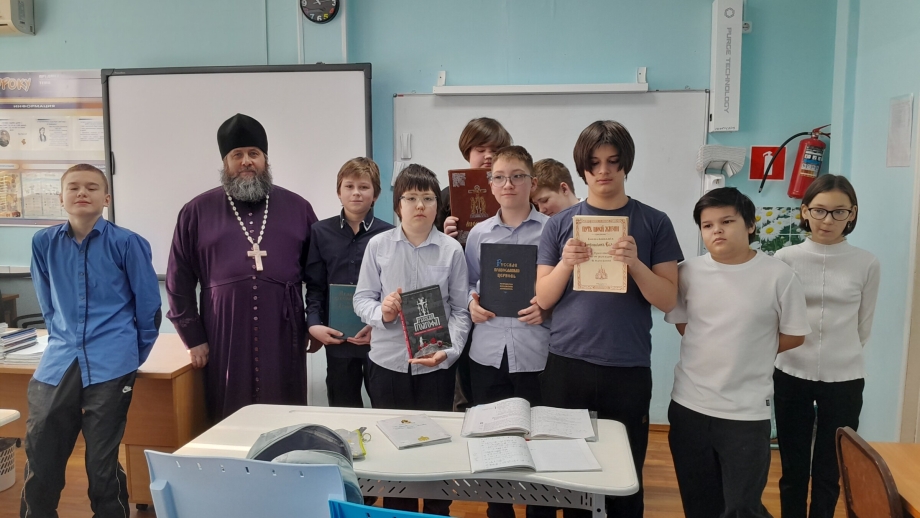 18 марта 2026 года в Средней общеобразовательной школе д. Шапша настоятель храма в честь святого преподобного Евфимия Великого д. Шапша Ханты-Мансийского района иеромонах Роман (Киселев) провел урок-лекцию, который был приурочен к Дню православной книги.