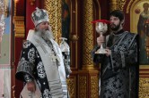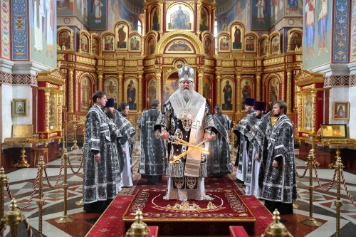 Его Высокопреосвященству сослужили: ключарь собора, иерей Сергий Нагорный, председатель епархиального отдела религиозного образования и катехизации, иерей Дмитрий Губанищев, эконом епархии, иерей Александр Петюр, клирик собора, иерей Григорий Белянин, диакон Даниил Матвеев, диакон Игорь Логвин и диакон Сергий Барыкин.