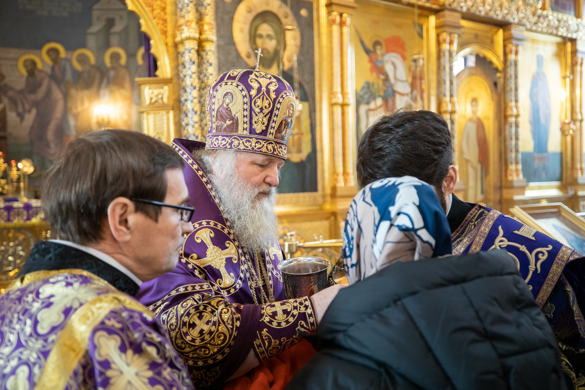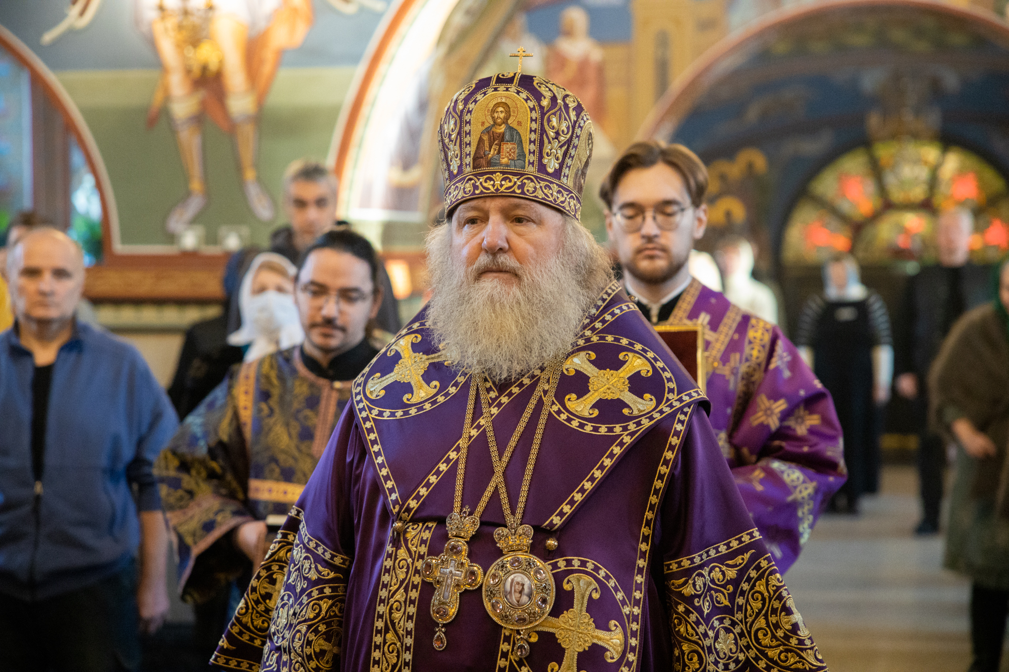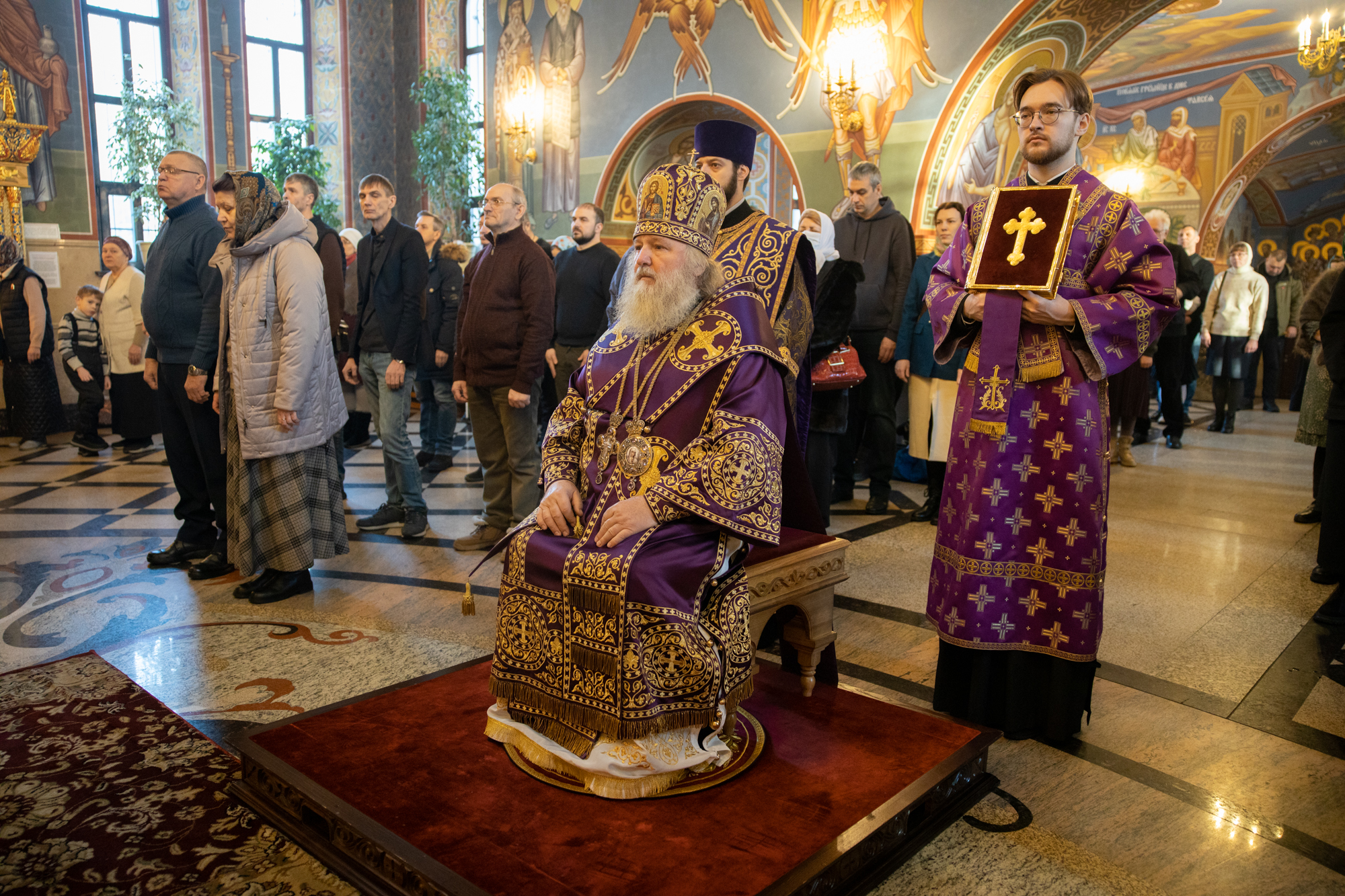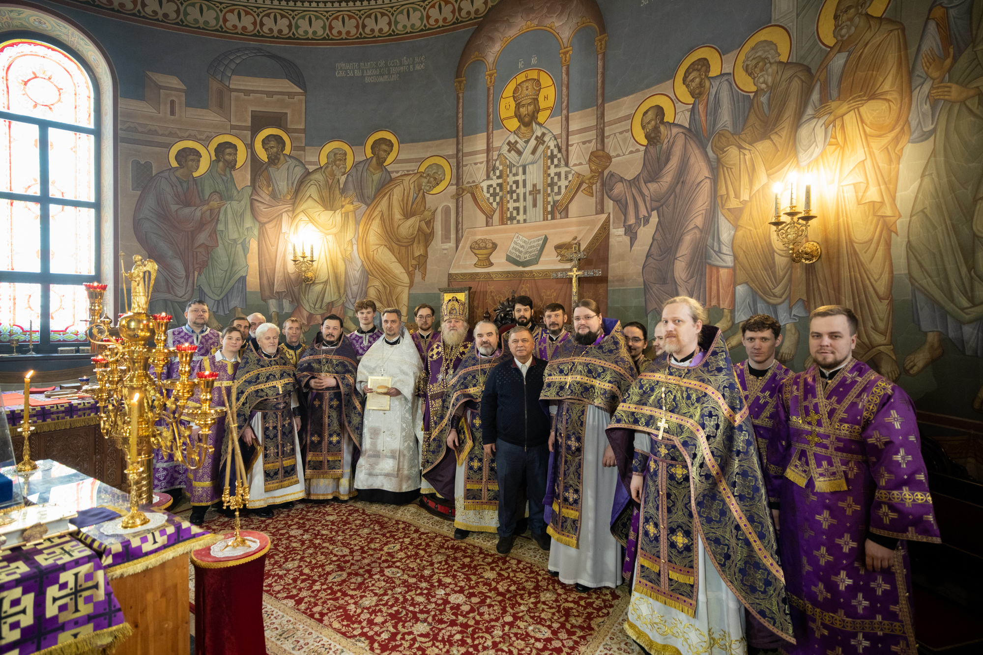Его Высокопреосвященству сослужили: благочинный Сургутского городского благочиния протоиерей Антоний Исаков, иеромонах Никодим (Пирховский), духовенство храма. Диаконский чин возглавил диакон Даниил Матвеев.
